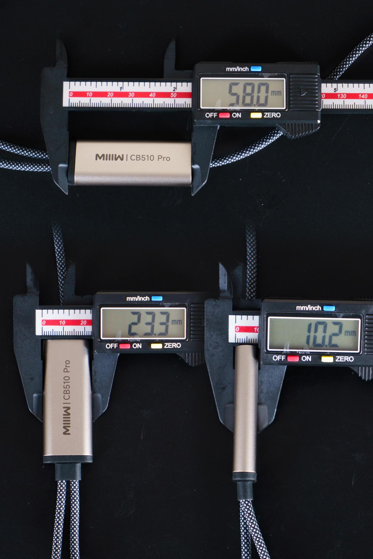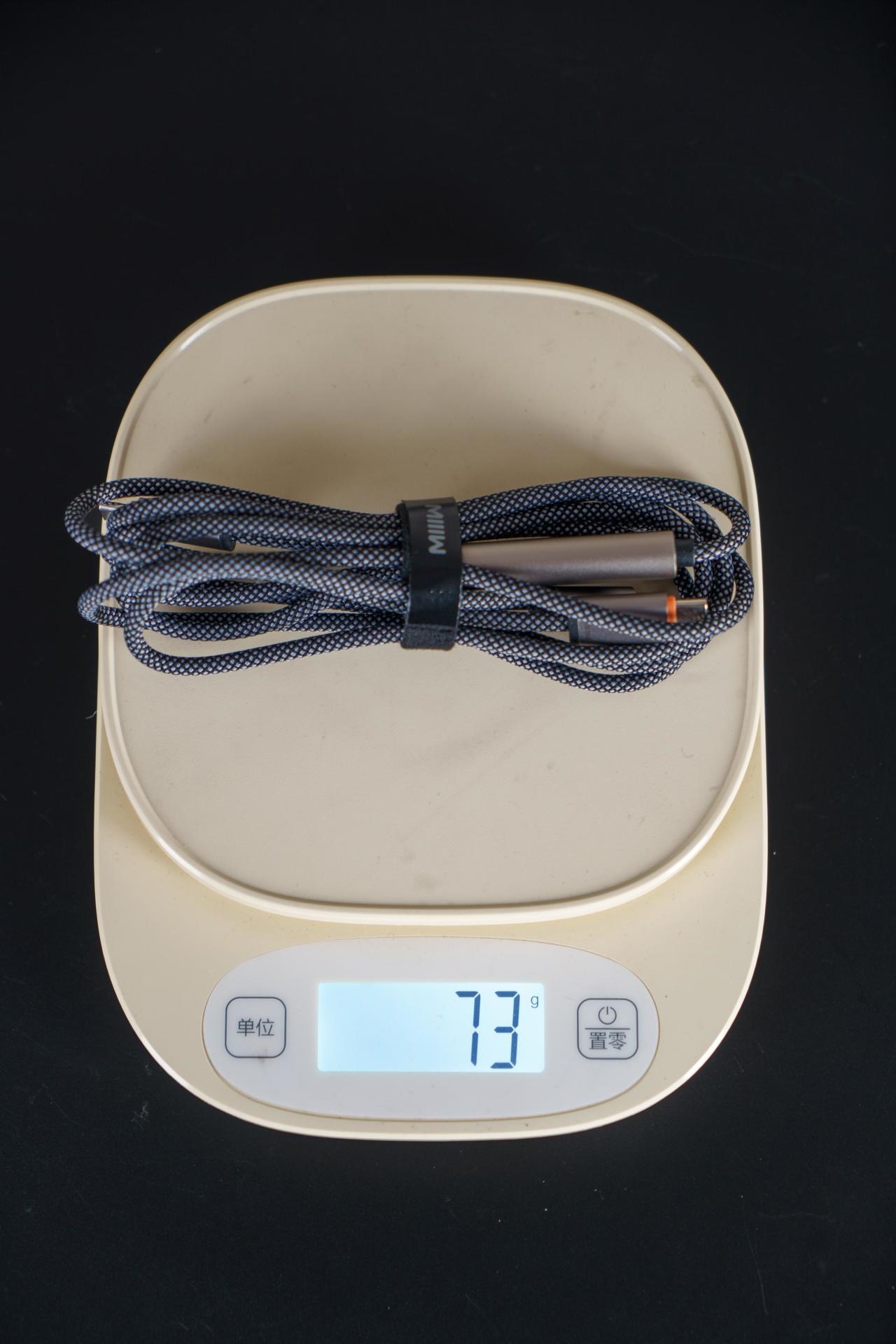 ▼协议转换模块的尺寸和整根线的重量如下,会比一般的一拖二充电线稍微重一些,不过也还好,随身携带问题不大