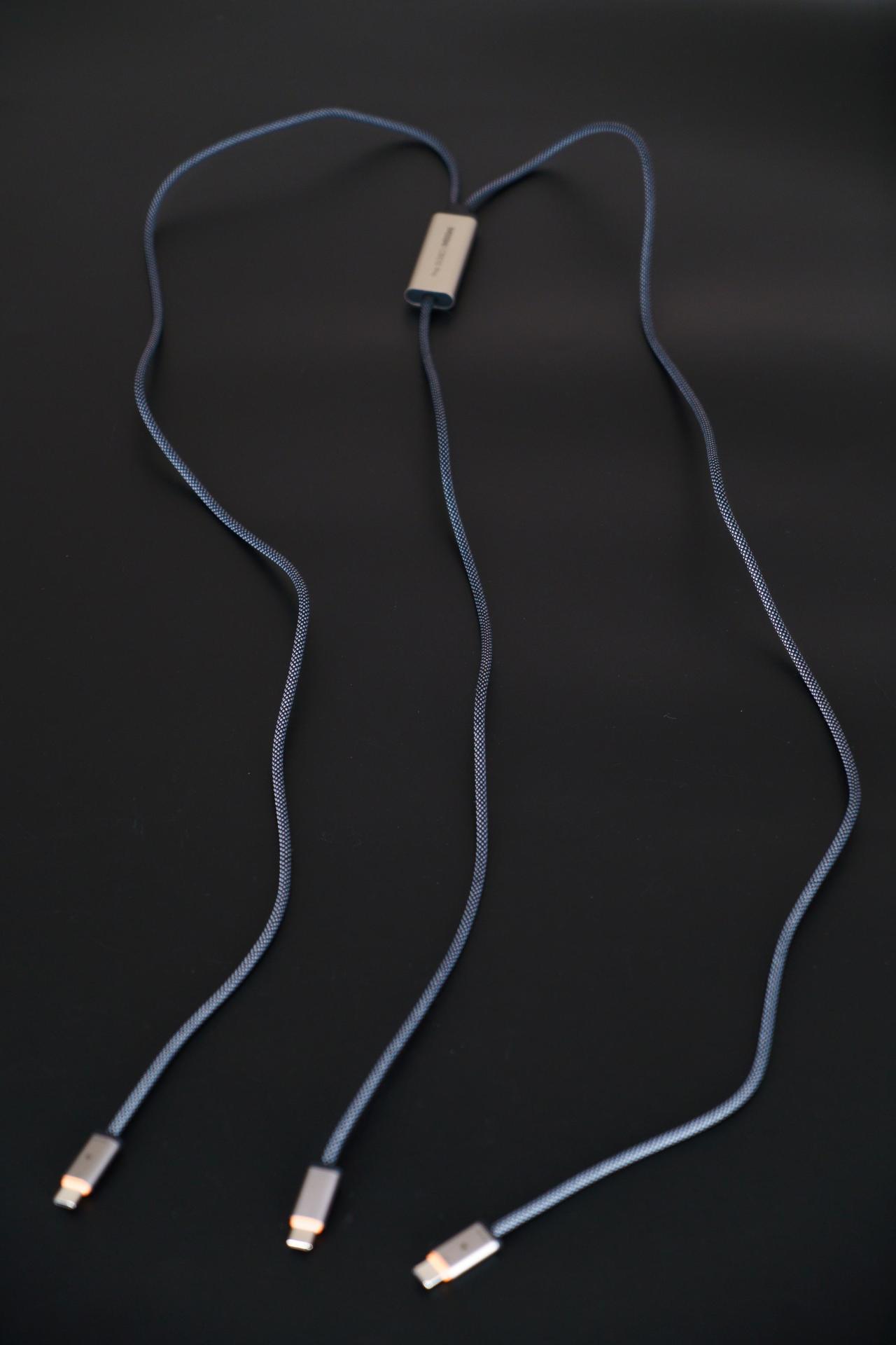 ▼量了一下主线长约50cm,两根分线都是80cm左右,第一次见一拖二的充电线,分线比主线还长,但是这个设计可以解决一个问题,就是常规一拖二线两个人一起用,因为线太短了两个人基本要挨在一起用,很不舒服,这根线就完全没有这个问题