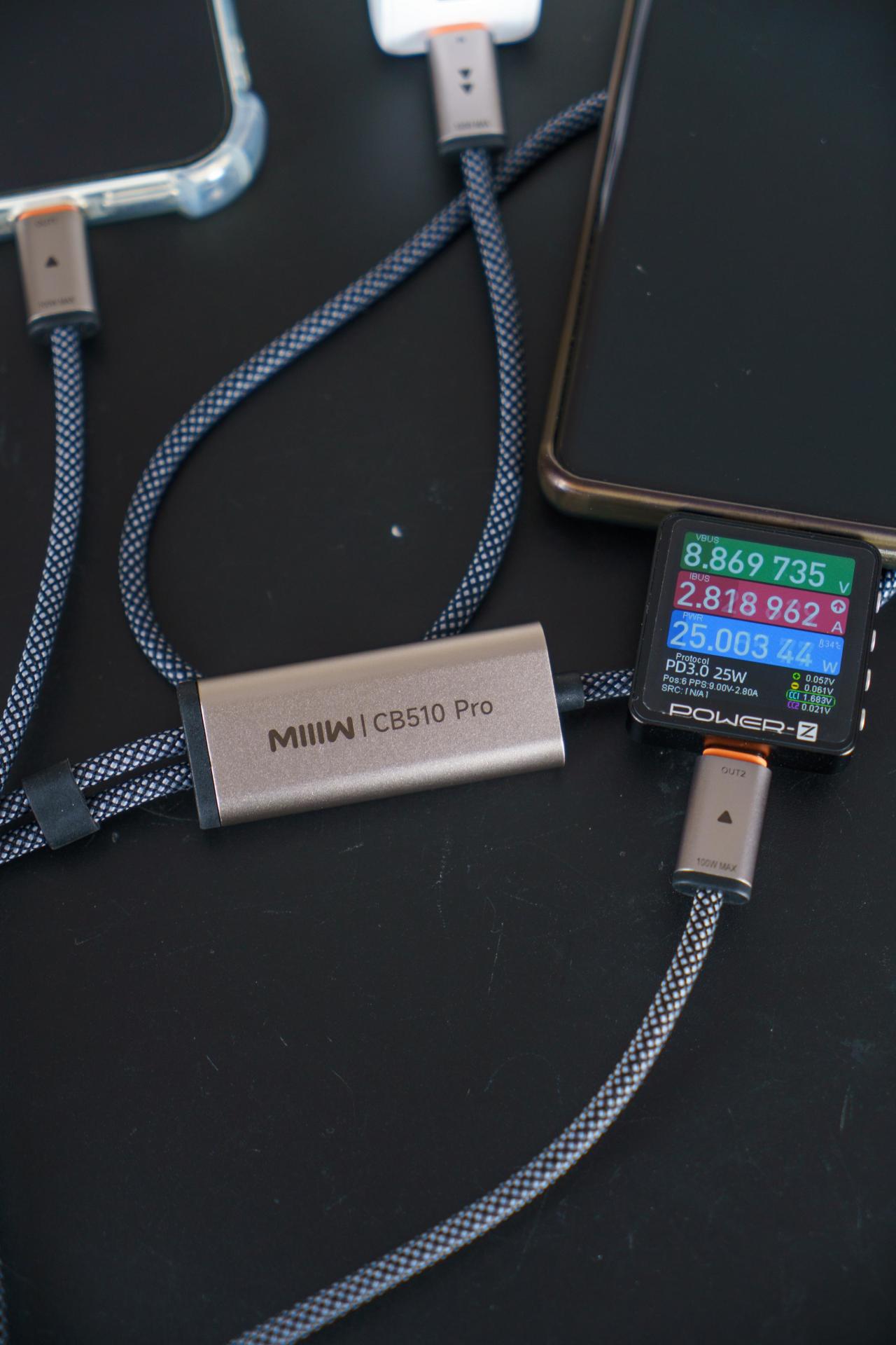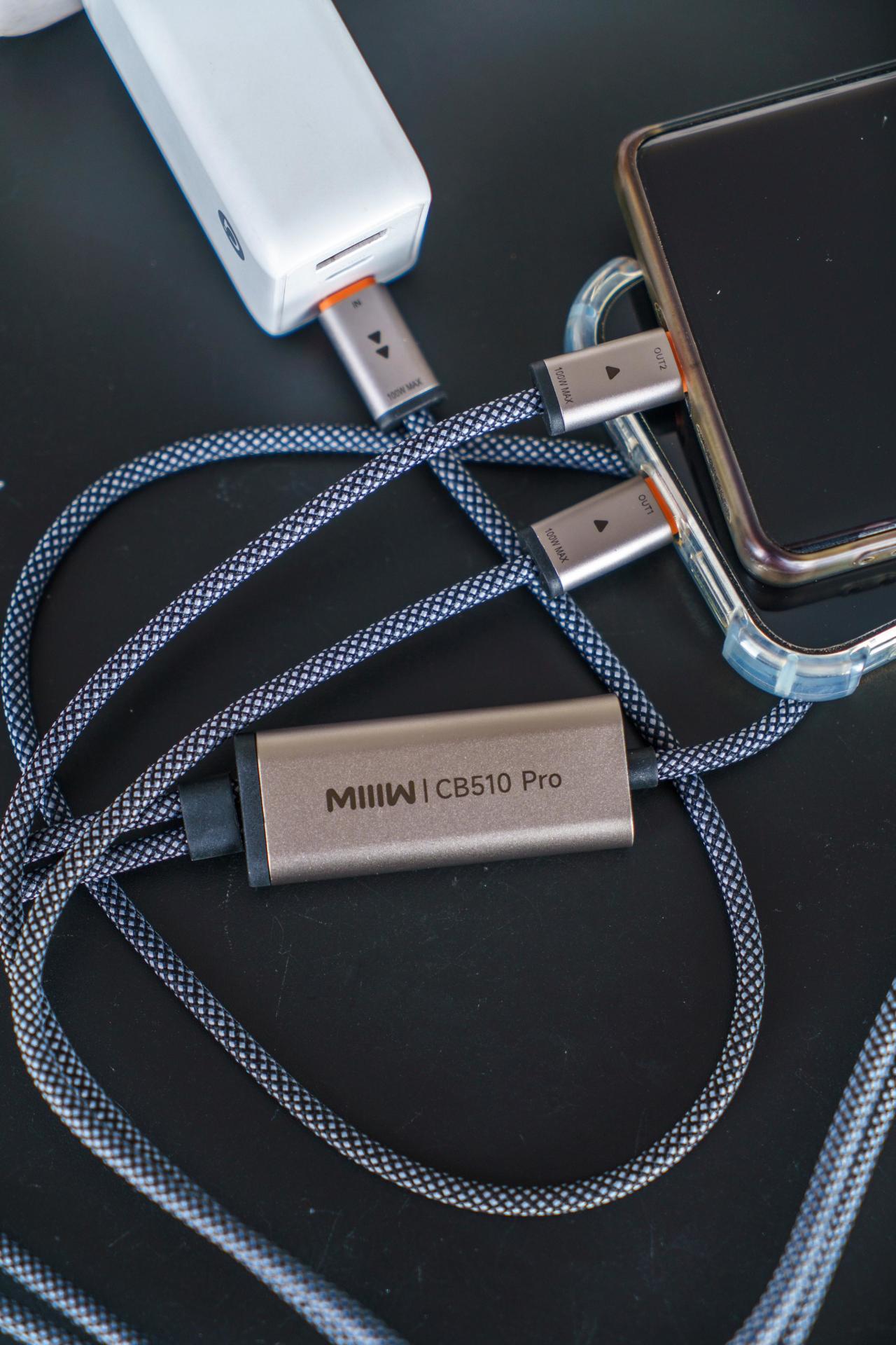 ▼这款米物超级充电线(一拖二) CB510Pro 更加适合拥有的小米设备占多数、其他品牌设备少一些的玩家,它可以把其他任意品牌的C口充电头转换成最高90W的小米私有协议,单路最高还支持100W的充电功率,相当于可以随意让你的充电头能在“小米原装充电头”和该充电头之间切换