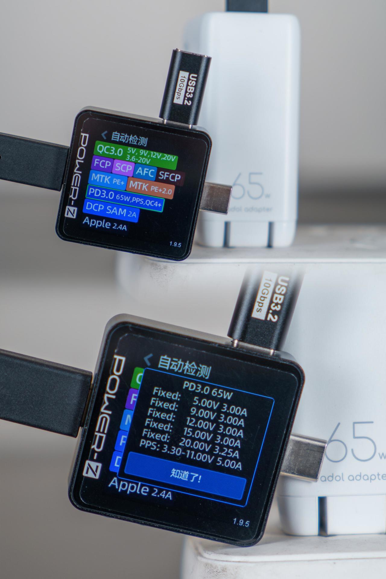 ▼不过接上这根充电线后,虽然充电协议少了很多,就只有QC3.0、PD3.0、小米90W(显示65W是因为我的充电头最高就65W)、DCP SAM 2A、Apple 2.4A,但是它转换成了小米私有协议,给小米设备充电可以跑到更高的功率