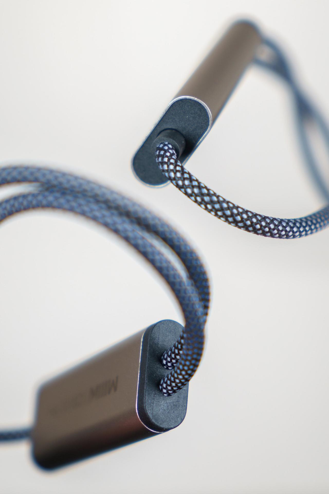 ▼采用了和苹果原装数据线一样的编织工艺,比纯胶皮的数据线更耐磨,手感也更舒服,它还标配了一根收纳魔术贴扎带,使用的时候把多出来长度的线收纳起来,挺好的