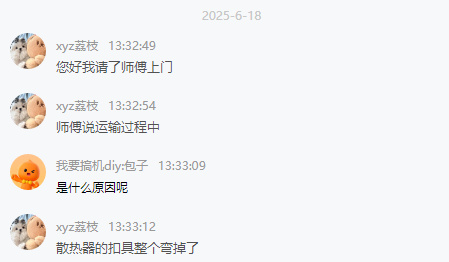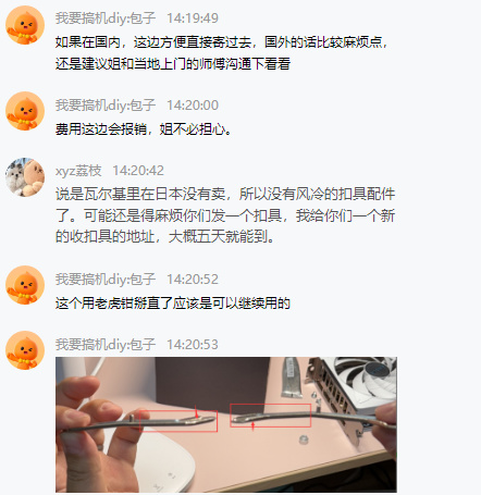 散熱扣具目測是可以掰正繼續用的,但女孩子沒工具,然後那邊的師傅不願意掰: