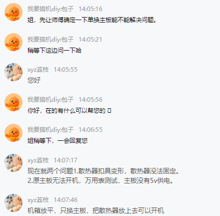 2、不能不帶內存、硬盤發貨。我推測當時主板點不亮,極大概率是遇見了兼容性問題,換套內存或主板就能解決。但可惜忽略了,又剛好遇見這事,導致售後發生時極其被動棘手