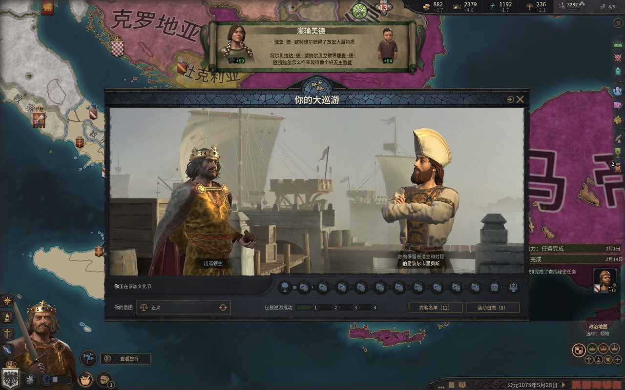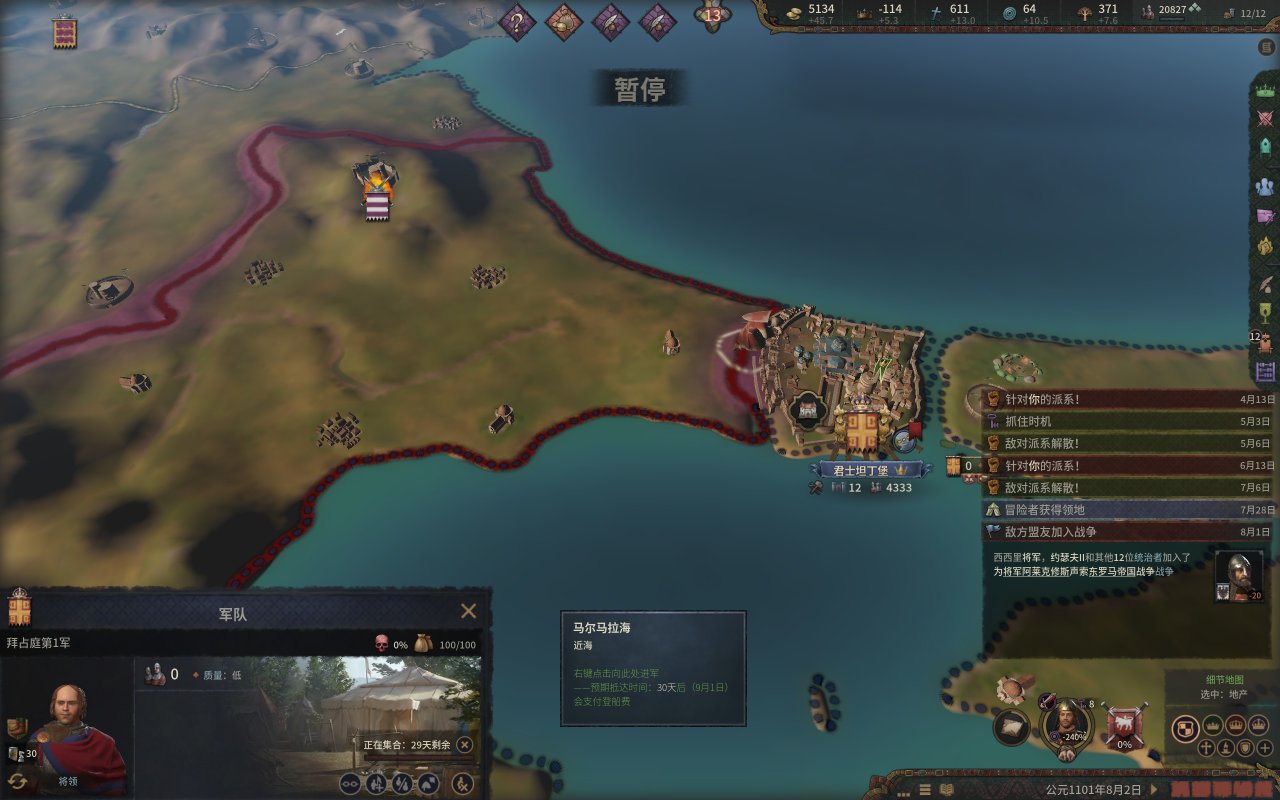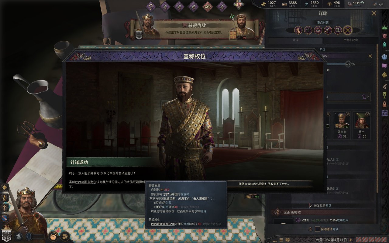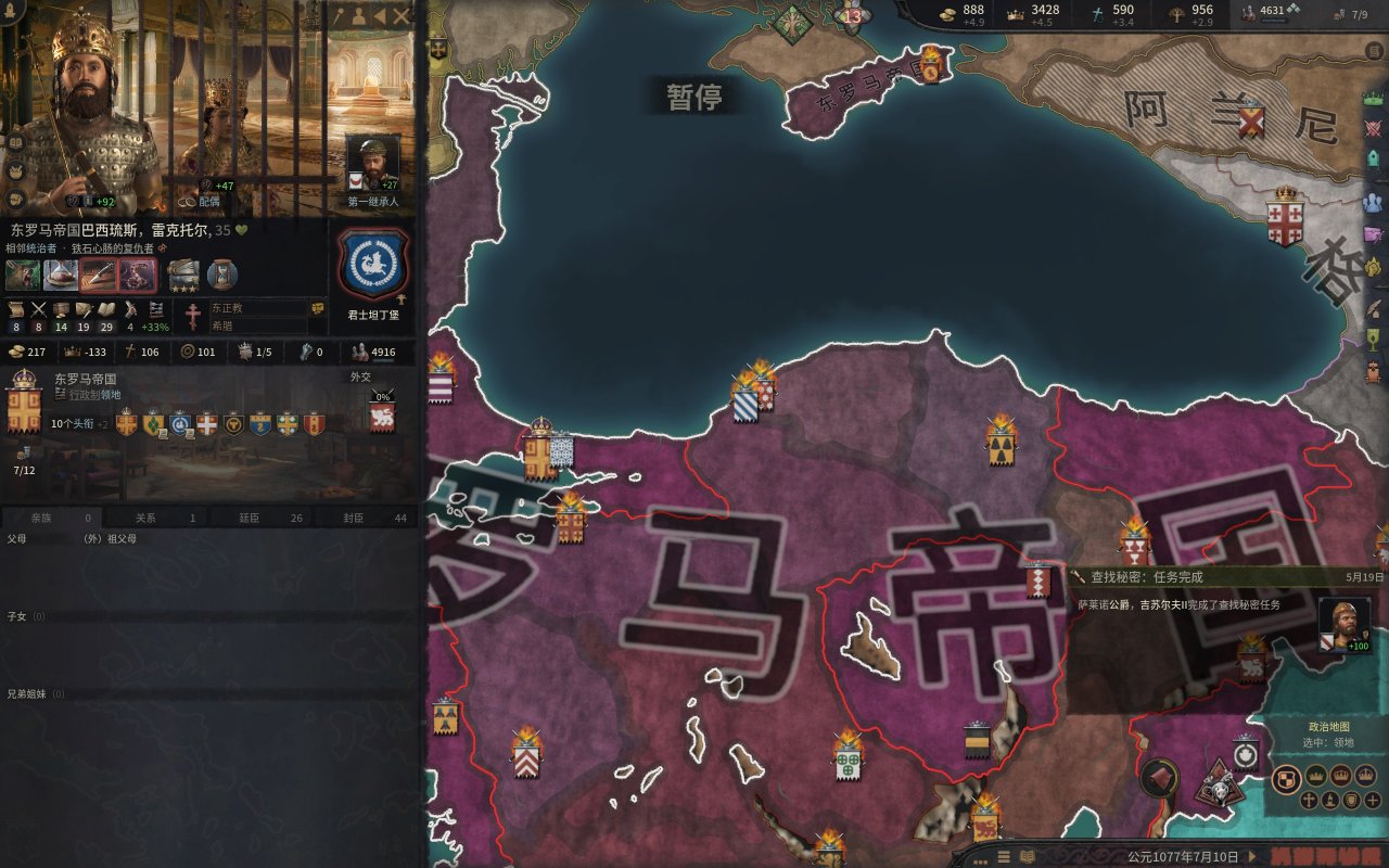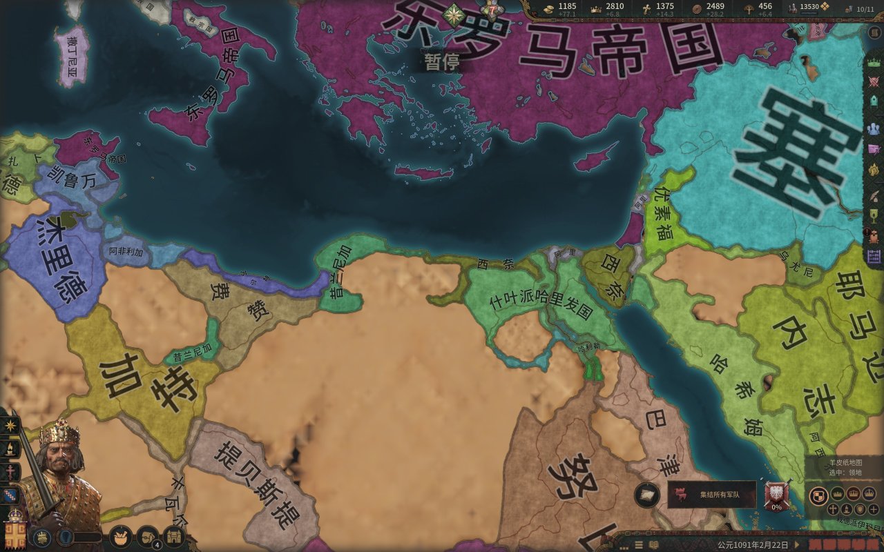 而我們的公爵也就如願的當上了西西里國王,然而,在國王朝聖的旅程中,一位修士找上門來,希望我們的國王能夠幫助他奪取大位,而報酬則是整個伊庇魯斯!(這段就是p社自己造歷史,羅伯特大舉進攻東羅馬的原因是米海爾七世以重金和聯姻爲由,與羅伯特結盟,但是米海爾被希臘三連後,這個報酬就泡湯了,而這位修士就是羅伯特所擁立的“米海爾七世)國王一聽,這可太好了,又有一大塊地可拿。