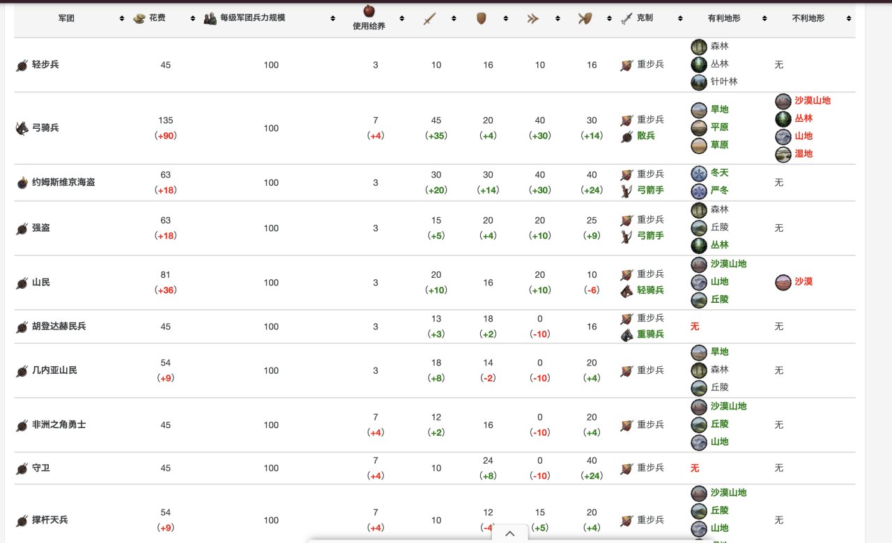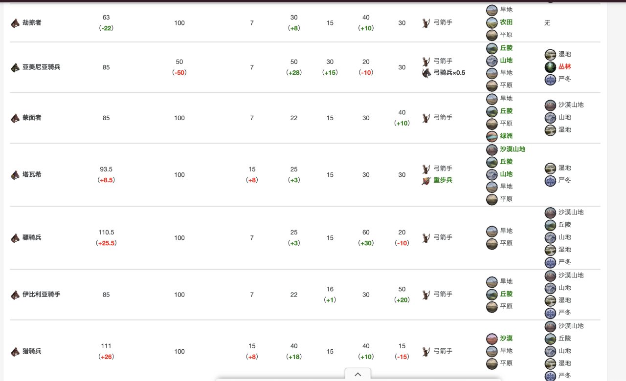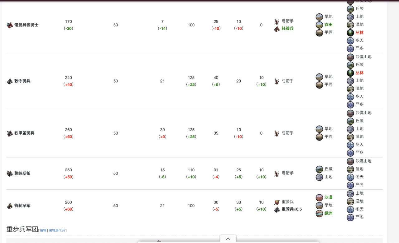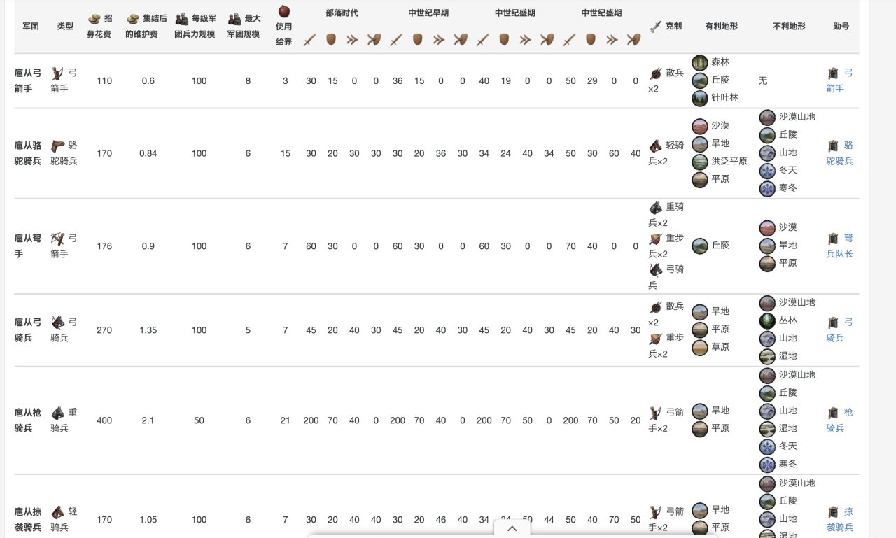 具體數據在這裏,當然,你玩多了就明白,爲了省事,其實只要硬堆重騎兵就行……