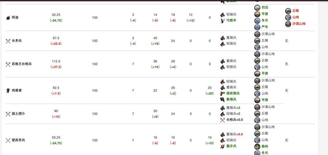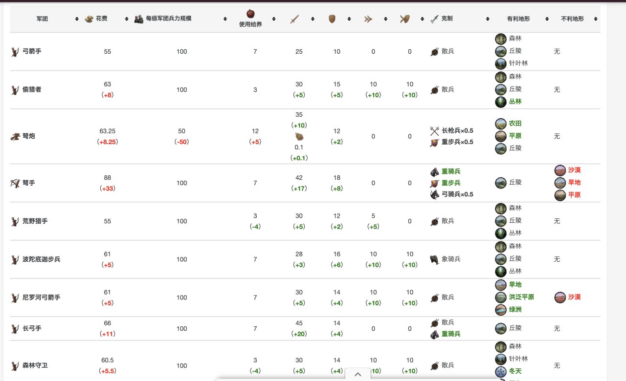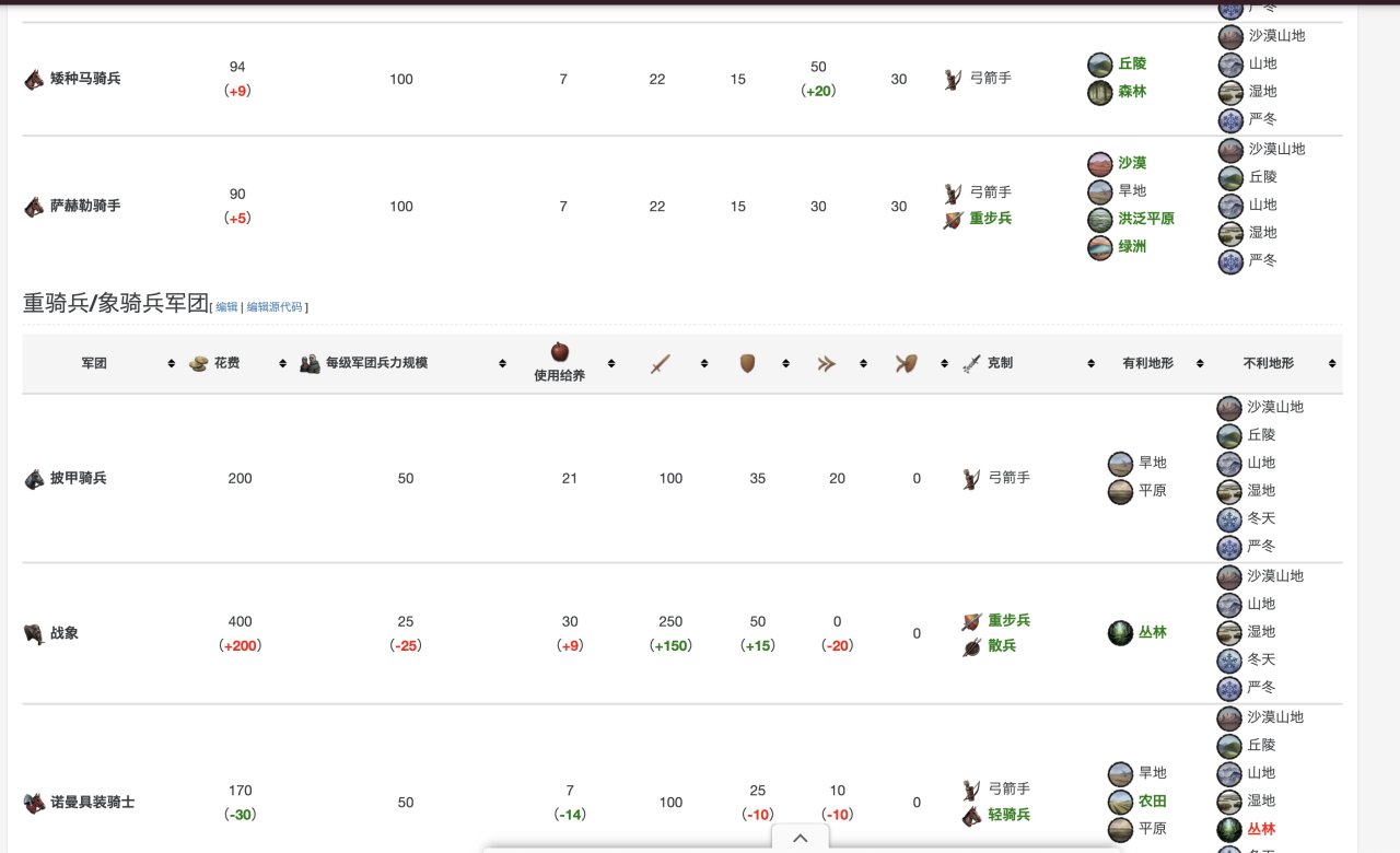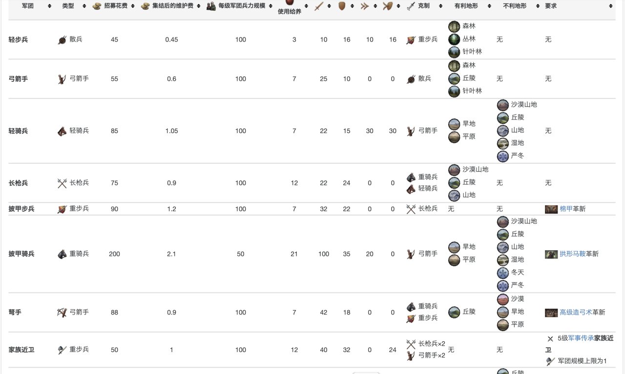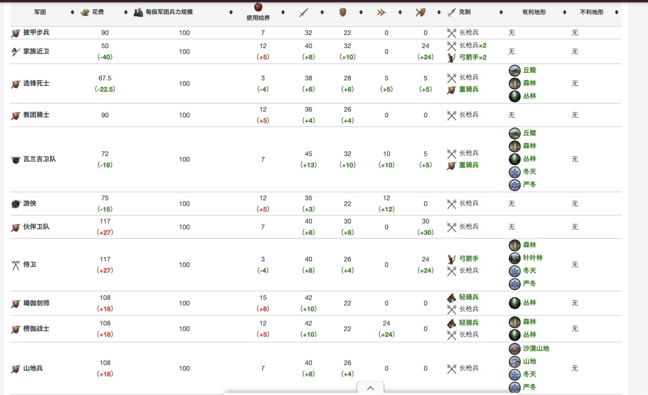具體數據在這裏,當然,你玩多了就明白,爲了省事,其實只要硬堆重騎兵就行……