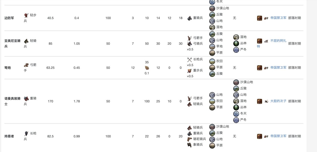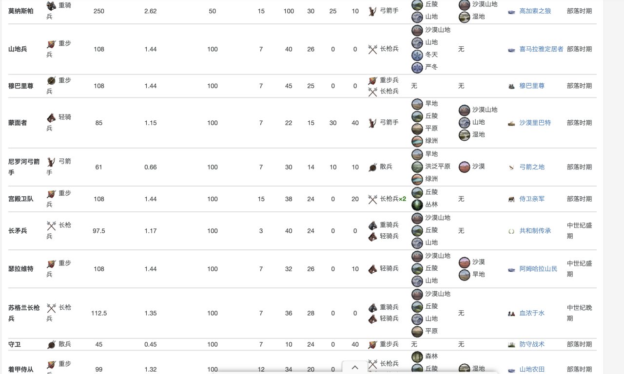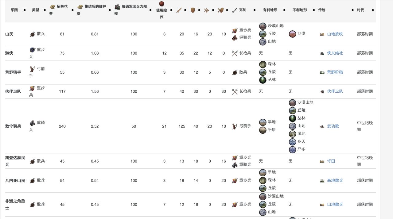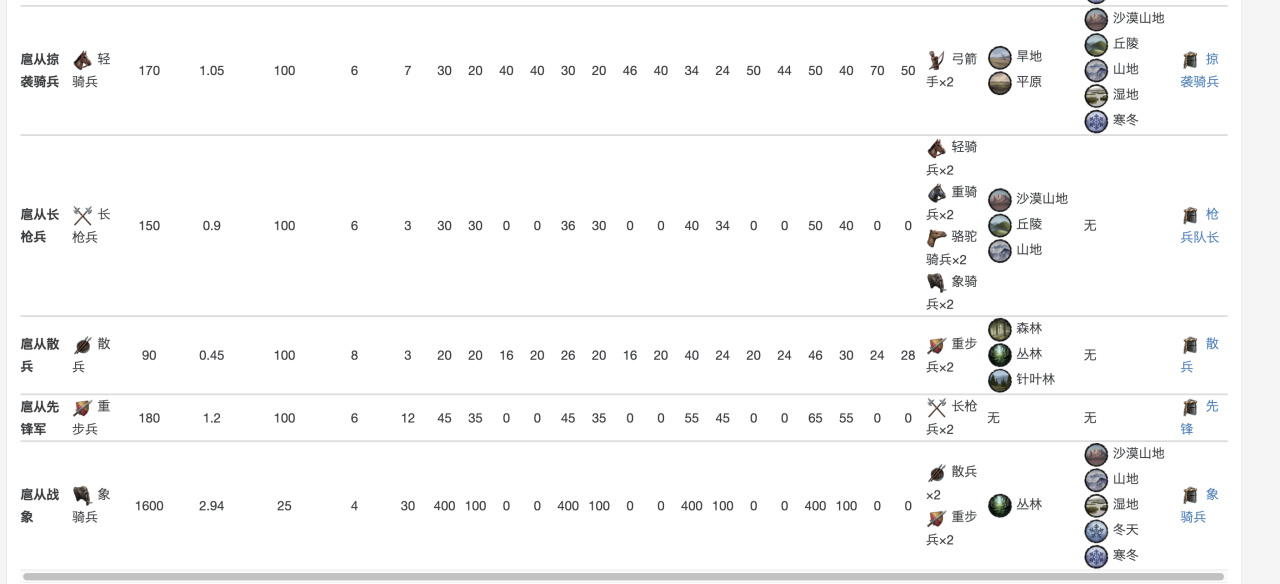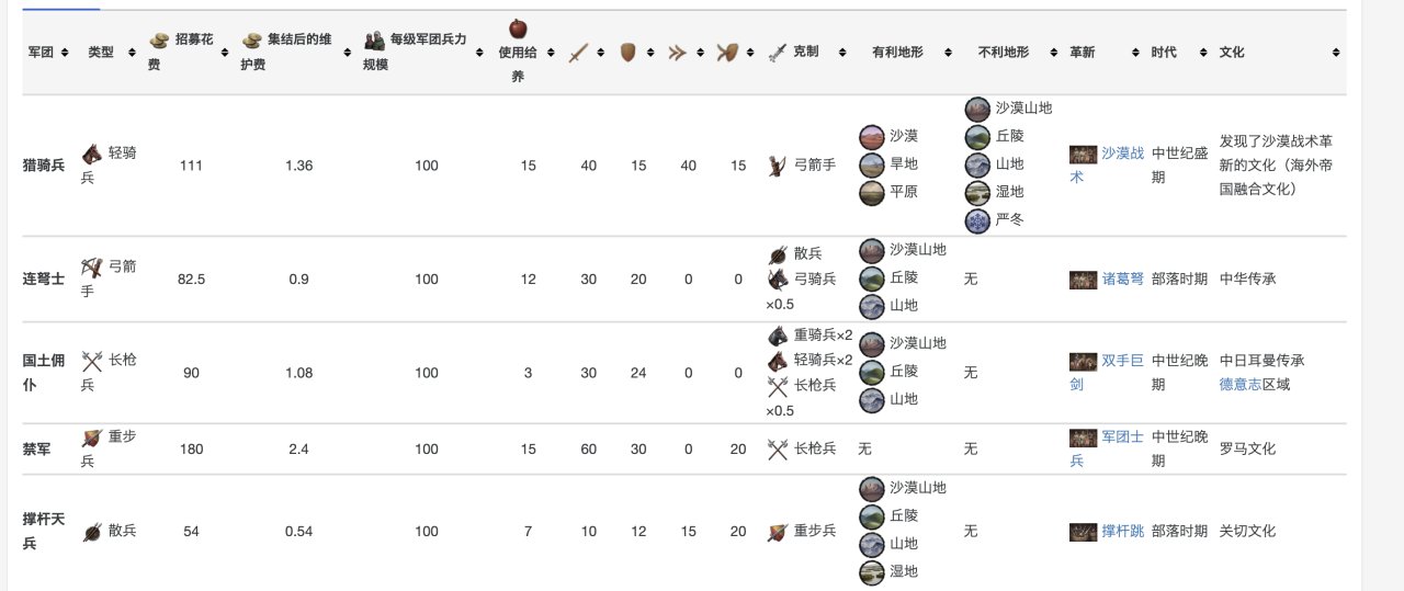 具體數據在這裏,當然,你玩多了就明白,爲了省事,其實只要硬堆重騎兵就行……