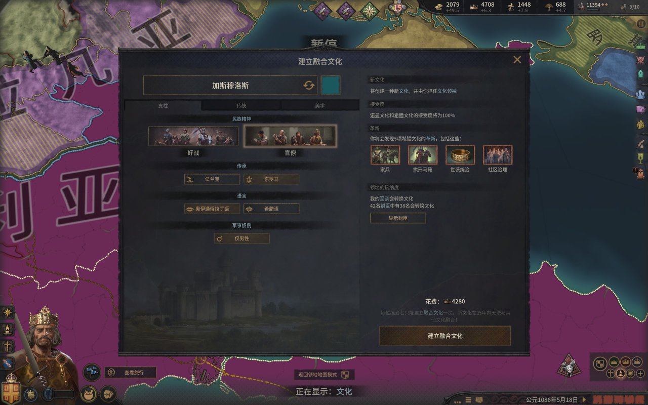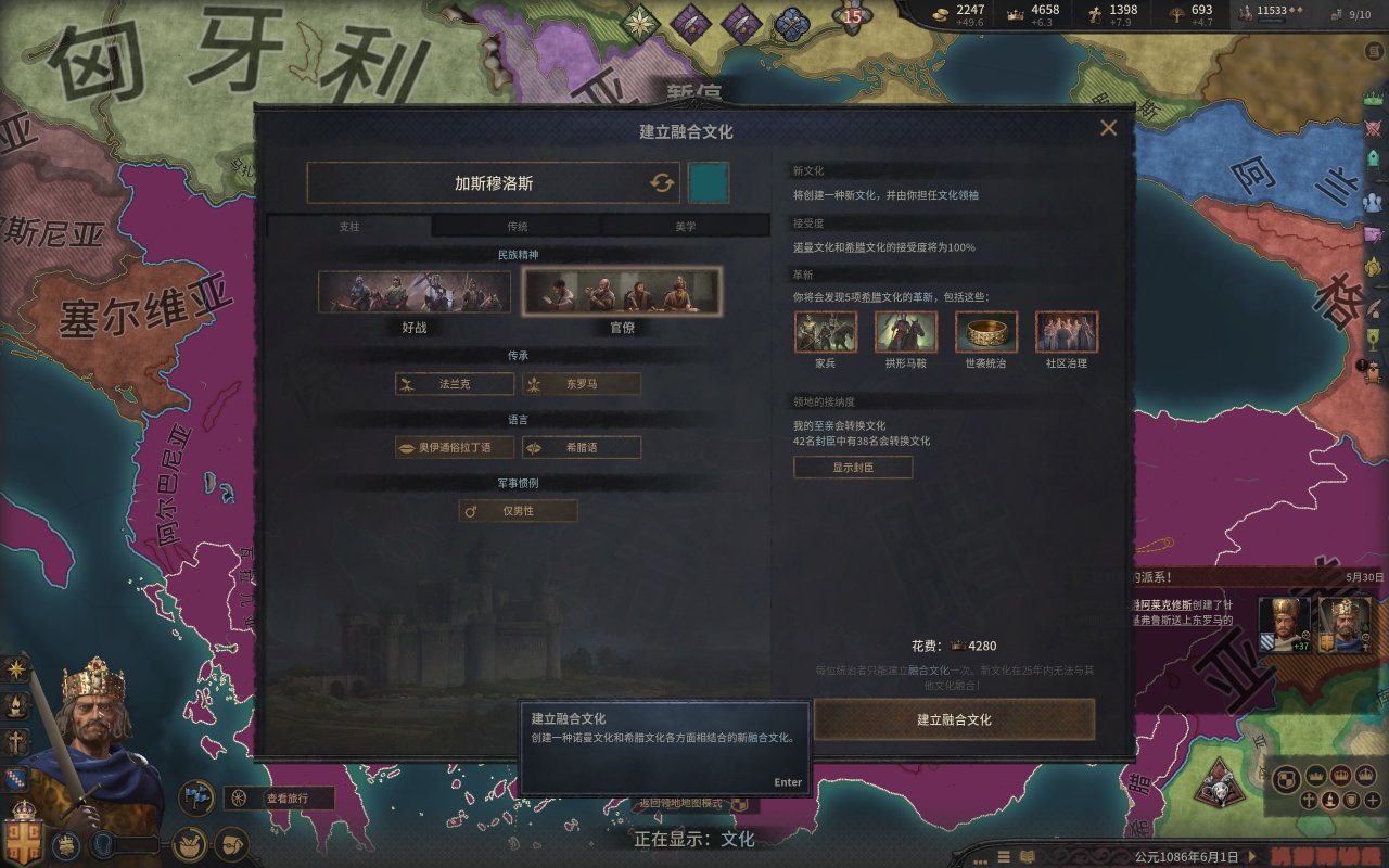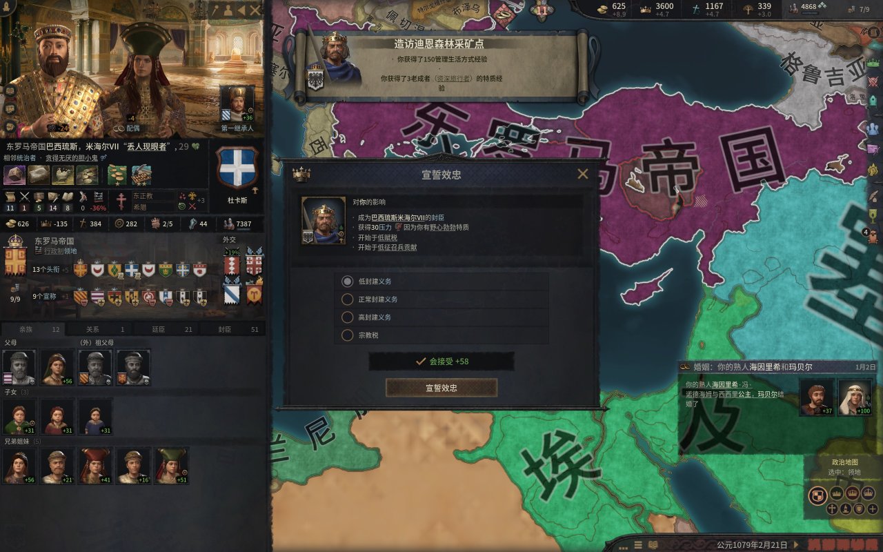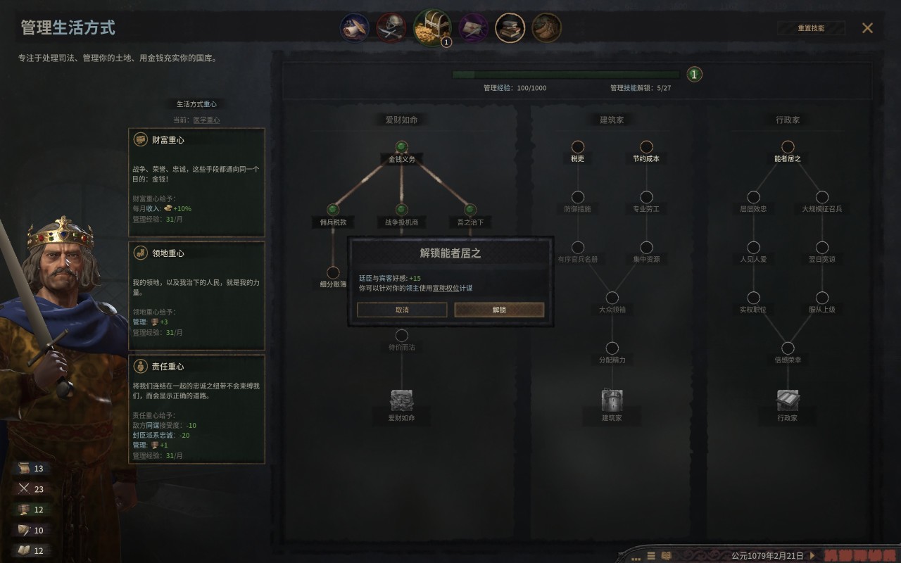 當然,在成立帝國之前,是有很多事情要做的,比如改技能點,聯盟什麼的,先給大女兒找個好夫婿,然後重置技能點,把管理的四個技能點都點在財政左線(金錢交易,吾之治下),軍事技能點不變,但是後來的軍事技能點點在軍事中線,這個目的是爲了消化大量新徵服的土地。