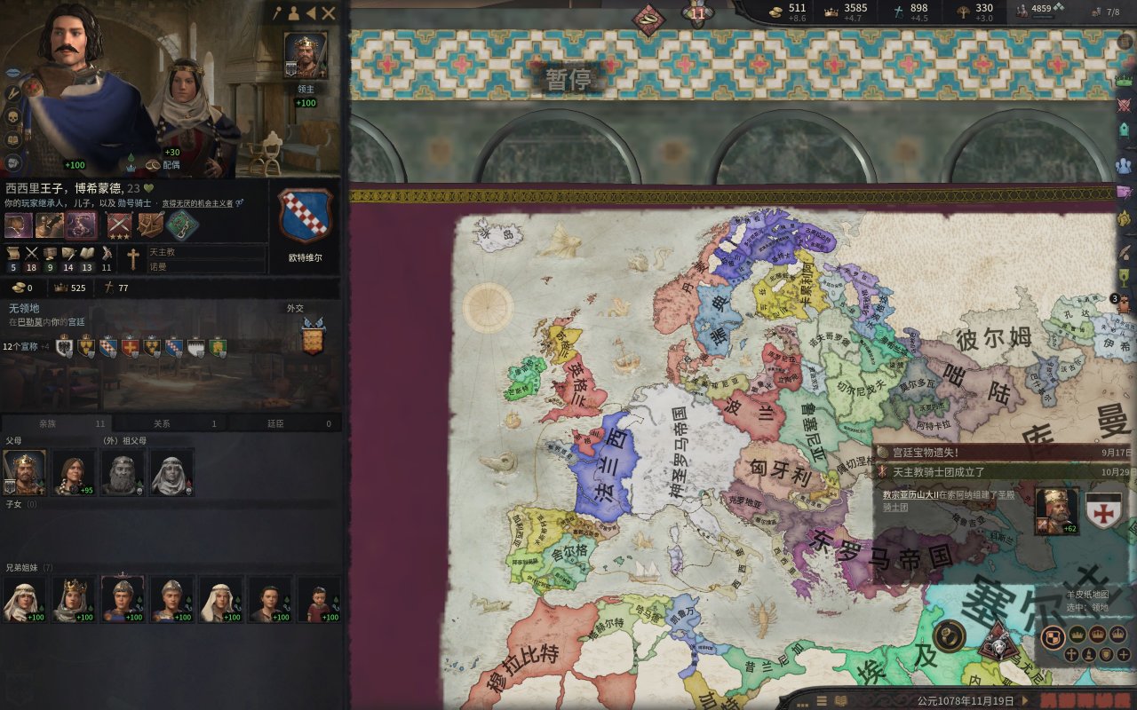 但是西爾德蓋達的去世倒是方便我們的博希蒙德恢復應得的繼承權,而能者居之的技能則代表着國王真正的野心。
