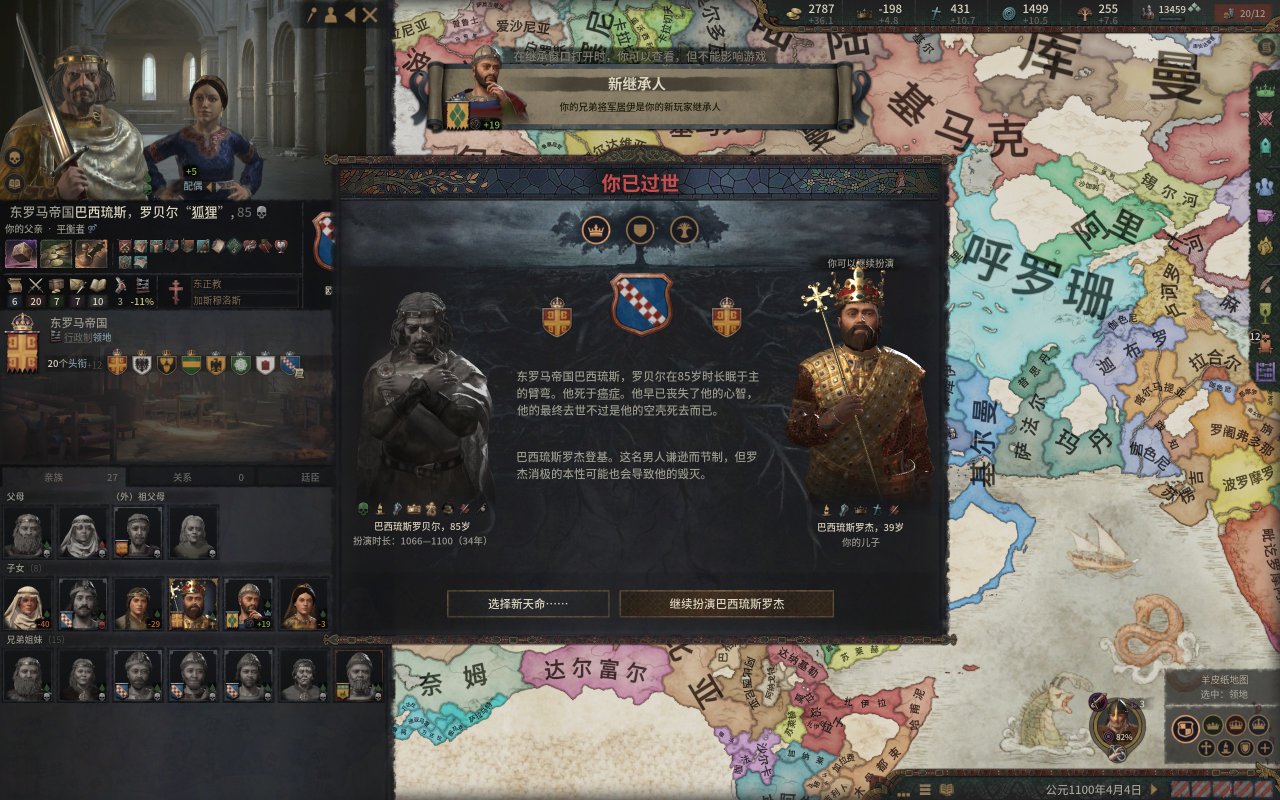 雖然皇帝本想讓博希蒙德的兒子繼承皇位,但是皇帝時日無多,於是只能把皇位交予自己本不想讓其繼承大位的二兒子羅傑的手上(當然,他的屬性其實教得還行,及格屬性還是有的)。