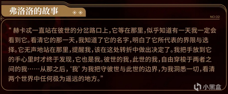 再看一遍官方透露的弗洛洛资料,她躺在小镇草坪上时总是想着这同一件事,虽然是说回忆过去,那小镇草坪是不是也是过去的一部分,如果真的是如此,很有可能就是弗洛洛本人曾经在乌洛波洛经历过这件事,弗洛洛在那次灾难中死去,在生死之间看到了赫卡忒,她称呼赫卡忒为彼世的自己,这里应该是指弗洛洛在濒死时激发了共鸣能力,将弗洛洛拉了回来,代价是成为了半人半残像的不死人。