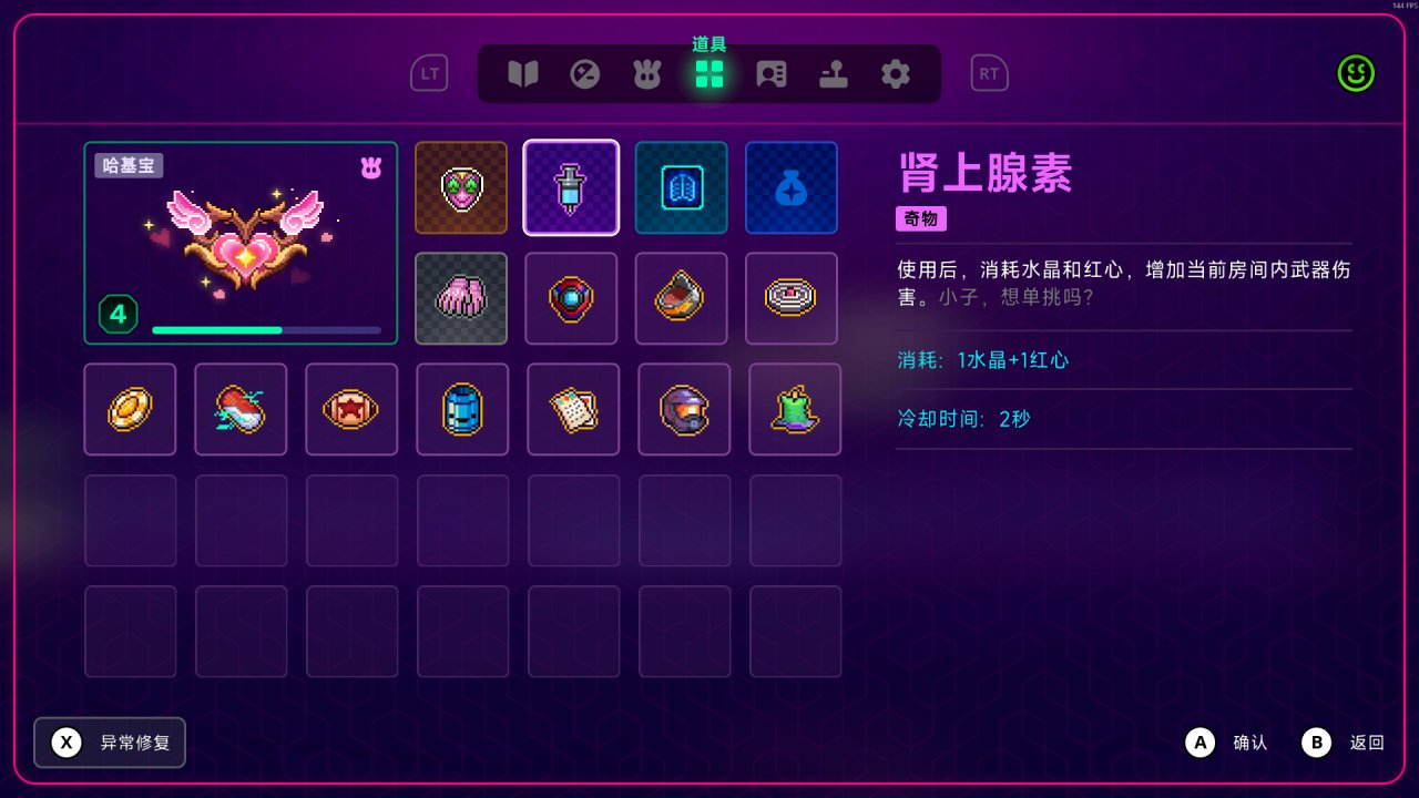 在探索方面,其实作为初次接触霓虹深渊的我来说,还是挺满意的,一些隐藏场景或者石制宝箱、石墙等可以通过手雷炸开,钥匙、水晶、道具也是尤为重要,有时候一个好的道具所加持的buff足以将体验拉到120%。