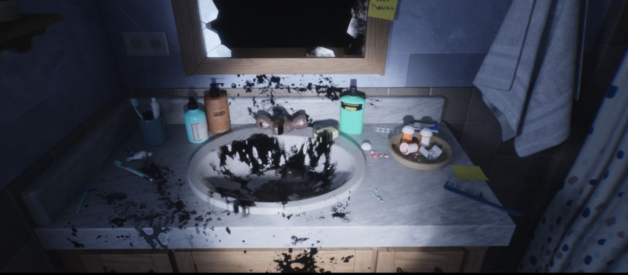Luto的第一幕,就是你控制的主角山姆,在一个厕所的镜子前面醒过来,找一下家门的钥匙,最后从家里走出去上班,就是这么简单,就是一个普通上班族的普通生活。