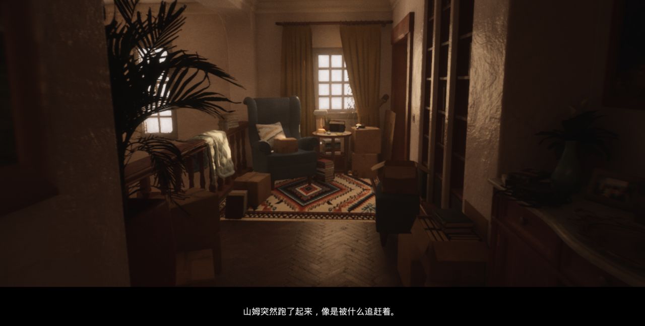 比如说,开局的时候游戏的教程提示你“按shift奔跑”,你往往会照做,跑上个两三步,这时候旁白突然就开腔了,“山姆突然跑了起来,像是被什么追赶着”。