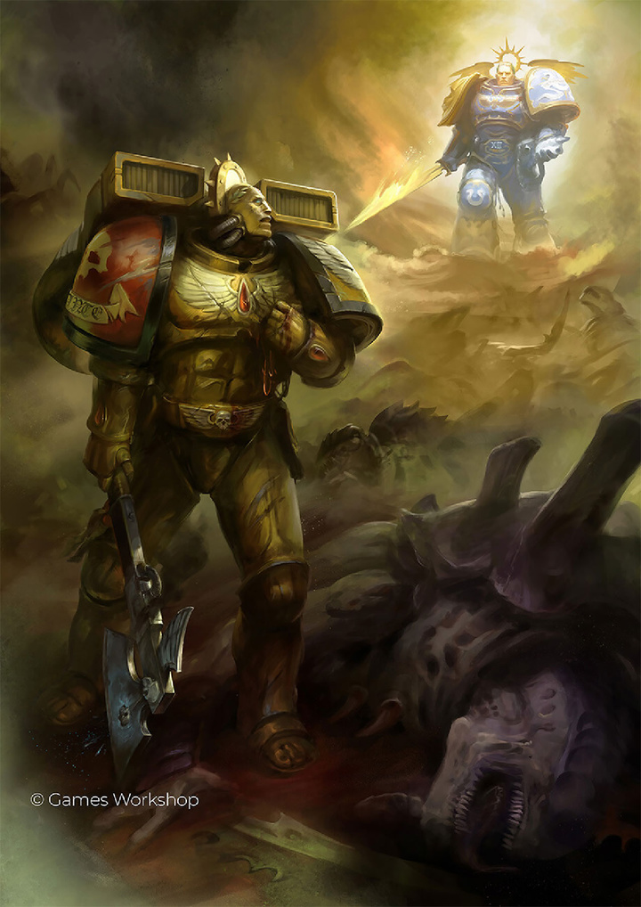 在帝国未知的内战风暴年间,但丁始终维系着圣血天使的完整;他麾下舰队喷吐的怒火,曾将整支叛徒舰队化为星海残骸。在阿斯塔特同伴眼中,他是无畏精神、奉献意志与战略天赋的典范;对疲于奔命的星界军将帅而言,他是必将驰援的尊贵盟友;而对帝国凡人士兵与平民来说,他根本就是乘火焰之翼降临人间的黄金神祇。