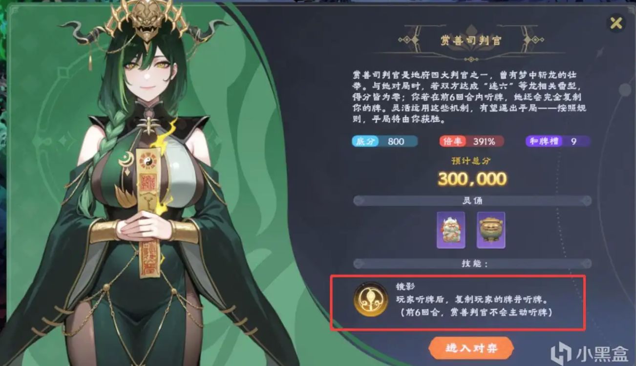 賞善判官能夠直接複製玩家聽牌牌型,就比誰運氣更好或者底分倍率更大。強制將玩家成順的手牌打出/不可見的霧寶牌/隨機變化的迷霧牌。