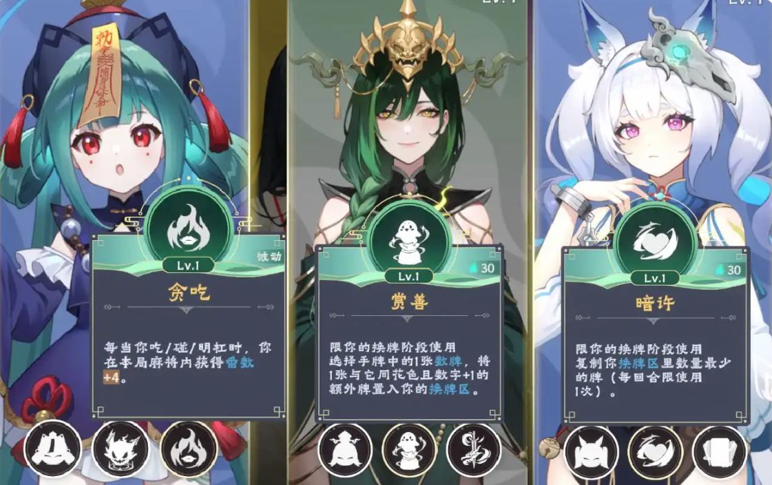 爲了照顧新手玩家的體驗,遊戲開放的三名初始鬼娘玩法簡單、成型快,尤其是輪椅T0的馬面。無腦喫碰槓也能加番的饞寶、變出萬牌無腦做清一色的滿寶、複製牌無腦做七對暗刻的馬面。