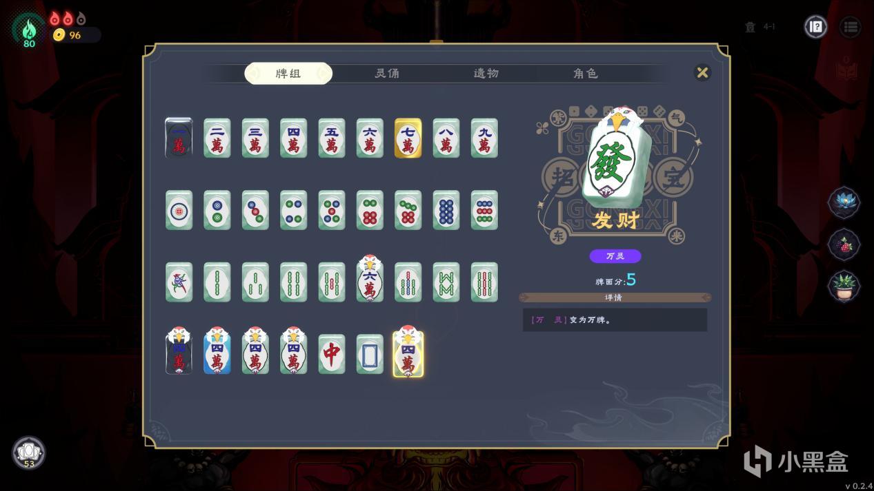 牌灵或者宝牌则更偏向于针对特定牌种BUFF与DEBUFF的选取,比如让某一种牌变成随机万牌的“万灵”或者能够让你的胡牌底分提升的宝牌等等,建议你在确定了这一整场肉鸽路线中胡牌方向了之后再考虑做抉择;