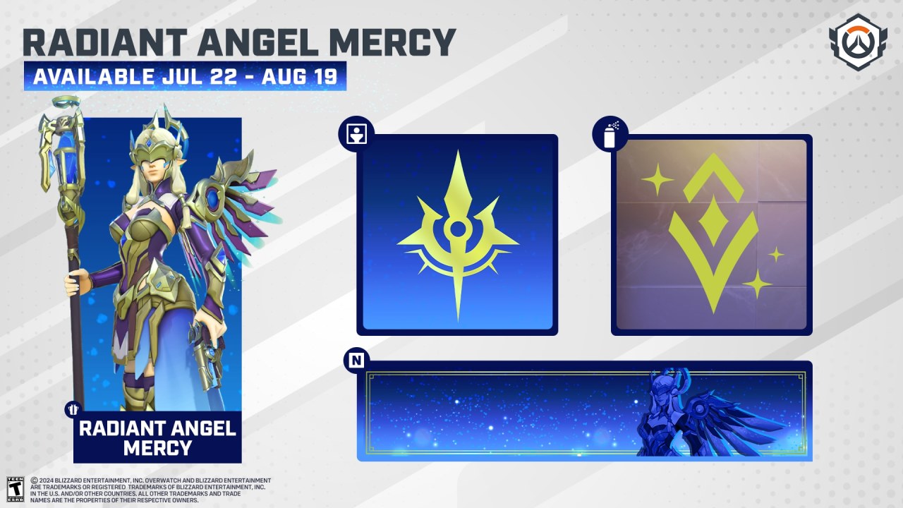 作爲 OWCS 商品的一部分,聖輝天使皮膚現已加入陣容,7月23日起限時開放購買。無論你是常與法老之鷹玩家雙排,又或是熱情的 OWCS 粉絲,這都是支持夥伴隊伍發光發熱的絕佳機會!