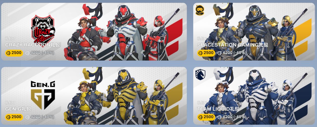 每支 OWCS 夥伴隊伍都有專屬組合包,現已開放購買。不論你想支持家鄉隊伍、還是你最愛的 OWCS 隊伍,或只是想挑個符合你風格的造型,每個人都能找到最適合自己的收藏品。