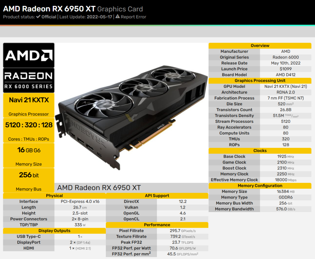 不过再往前看,AMD也干过一些奇怪的事,例如为顶级型号发布特殊变体,例如RX 6900XT LC液冷版,以及RX 6950XT,后者使用的是AMD官方特挑的Navi 21 XTXH核心。