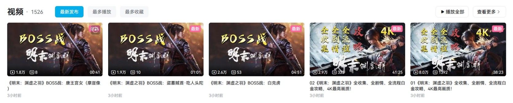 目前部分攻略UP主已发布《明末:渊虚之羽》攻略视频,如@紫雨carol、@黑桐谷歌、@追风Gamer等,都已更新《明末:渊虚之羽》攻略视频。
