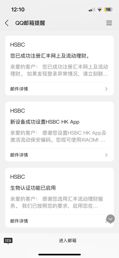 最开始很多人说的是可能会等很久,毕竟寄内地嘛,汇丰官方说的是四天左右好像,我是17号开户成功的,后面就没管他的,今天凌晨看见ems发了个提示