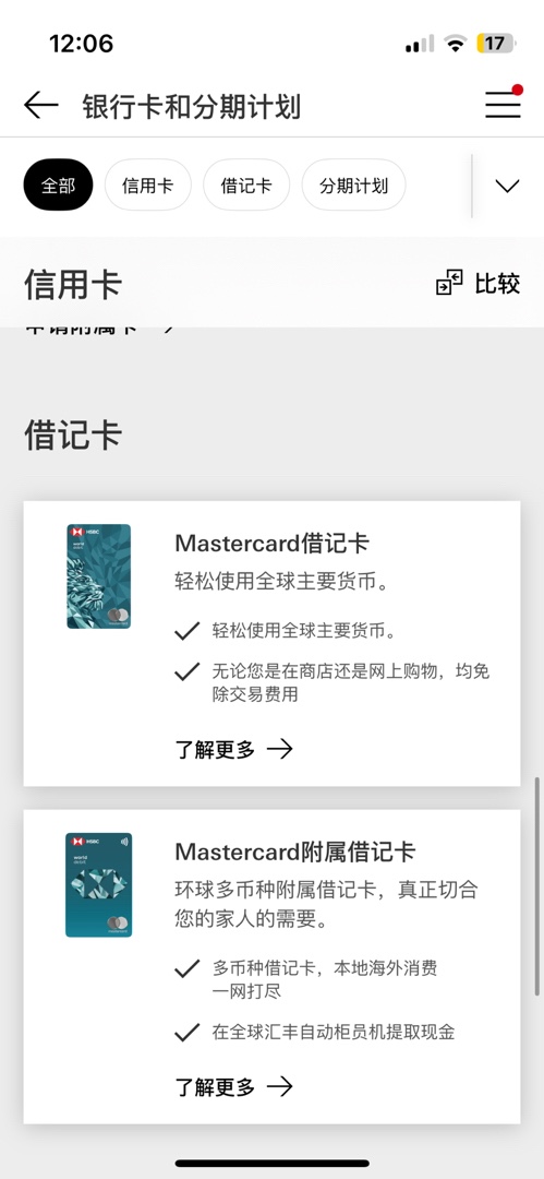注意借记卡相当于我们国内的储蓄卡,信用卡的开户要求过高我们这里不讨论,借记卡倒是随便申请,我们选第一个,点进去