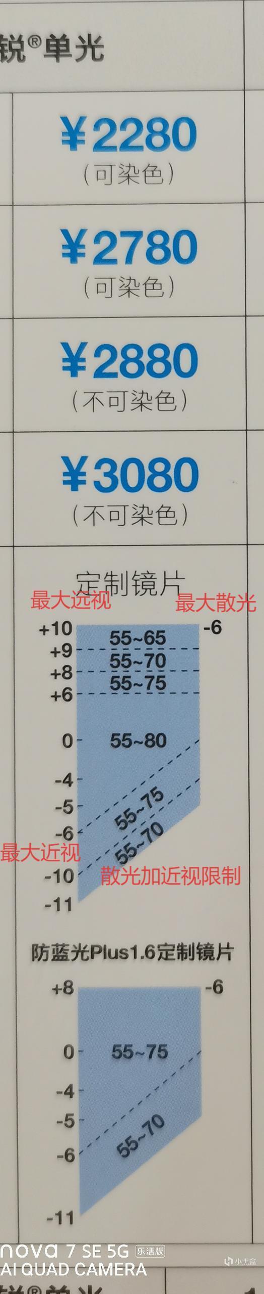 例如你的度数在500度,那么就可以选择1.60或者1.67折射率的镜片,前者便宜,色散小,但是厚,后者色散大,贵但是薄。具体的参数选择可以看看别人的推荐,这里也不多说了。