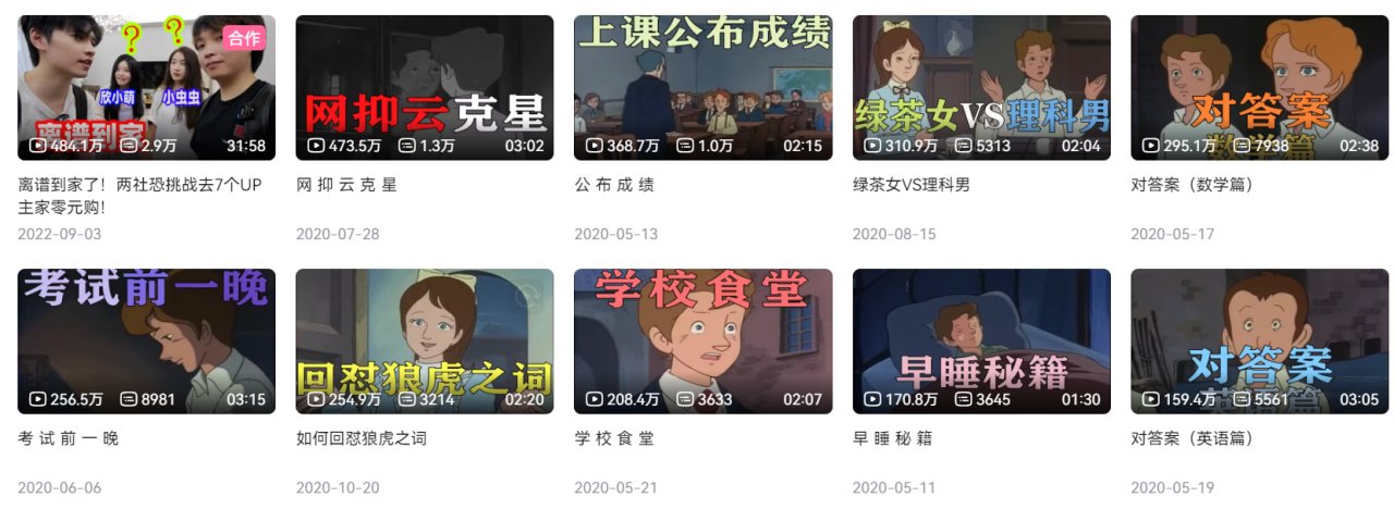 这几位也算是童年回忆了,我记得是在()那几年开始火的,写文案配音配上老动画,内容很多都围绕学生生活展开,以及当时的各种热梗,真的非常好笑www,不过现在这种类型不是很火了,要么转型要么退网