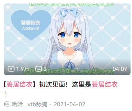 碧居结衣,一位日本的虚拟主播,很可爱,很治愈,所以关注了,结果后面因为人气不行,毕业了