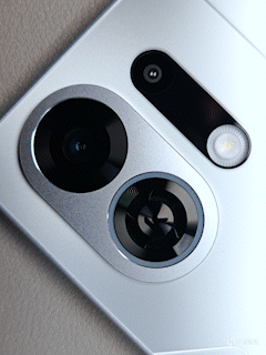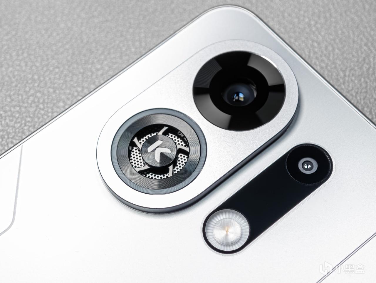 左上角的镜头Deco颇有一加13T的简洁之风,上方5000万像素主摄,下方等大的圆便是散热风扇进风口了,右侧感叹号长条对称放置了200万的副摄像头(其实感觉也没这个必要……)和闪光灯。