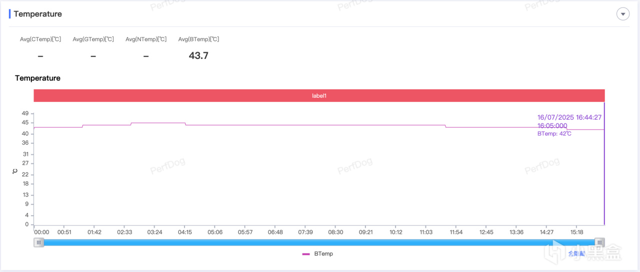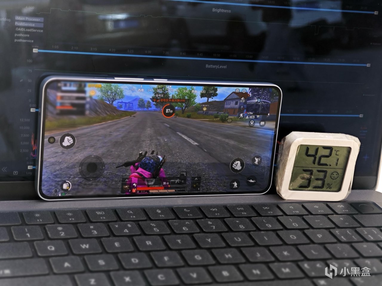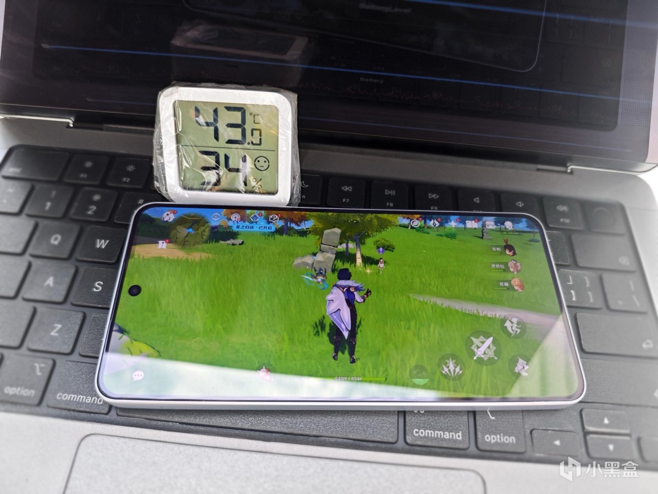 户外表面温度稍有回落却依然炙热难耐,在这种情况下16分钟的原神全高居然和室内玩起来体验差不多——42度到45度之间的电池温度,稳住了平均60帧的原神。