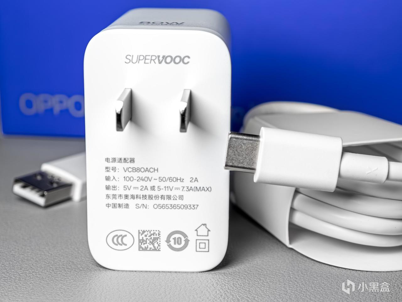 由东莞奥海代工,最大11V 7.3A输出(80W),侧面有标注80W SUPERVOOC标志。除了绿厂系VOOC外,仅兼容5V / 9V的QuickCharge 3.0协议。