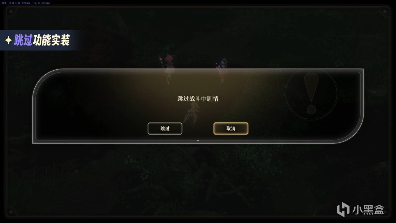 游戏主体新增【剧情文本跳过】,【战斗跳过】,【隐藏对话框】等功能,提升玩家游戏体验。