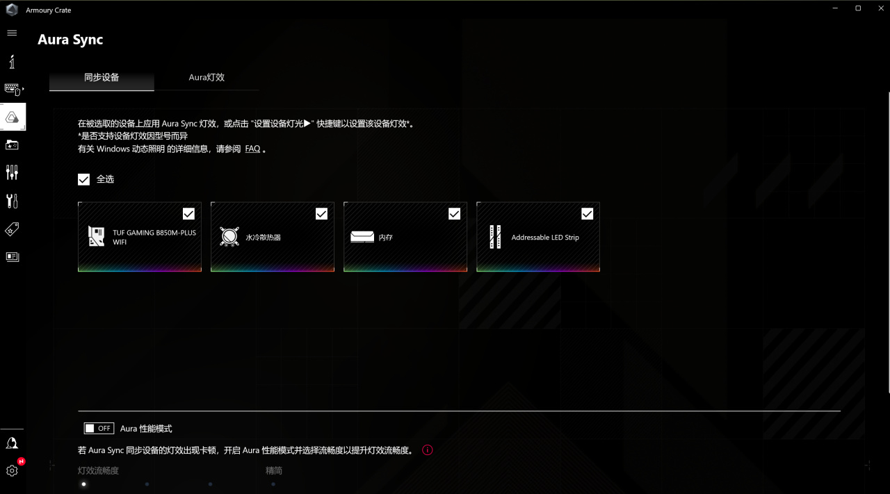 下面是测试环节,RTX 5070Ti O16G的RGB成分就是侧面的TUF标志,可以通过armoury来控制和同步