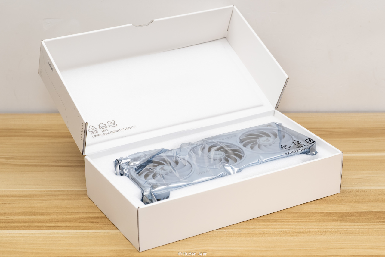TUF 5070Ti也是一白白到底了,从显卡的包装盒到配件盒,都使用了纯白色的材质,乃至送的磁贴和显卡支架都是白色的,细节上也是做到了极致。不得不说华硕现在产品力这么强,细节方面绝对是起了不少作用