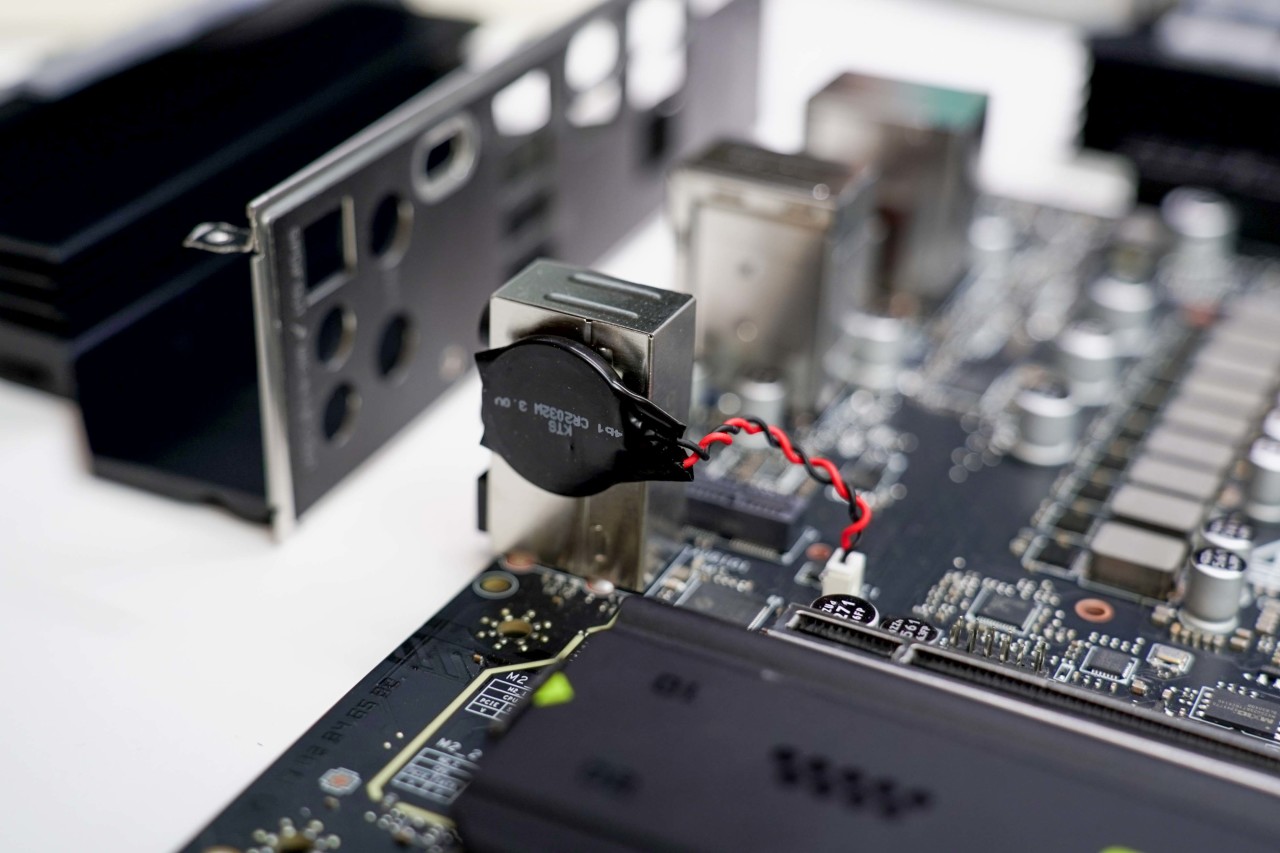 保存BIOS预设的纽扣电池则是通过2pin连接在主板上,一般不用动,后期更换会麻烦点,得用绝缘胶布原样粘回去。