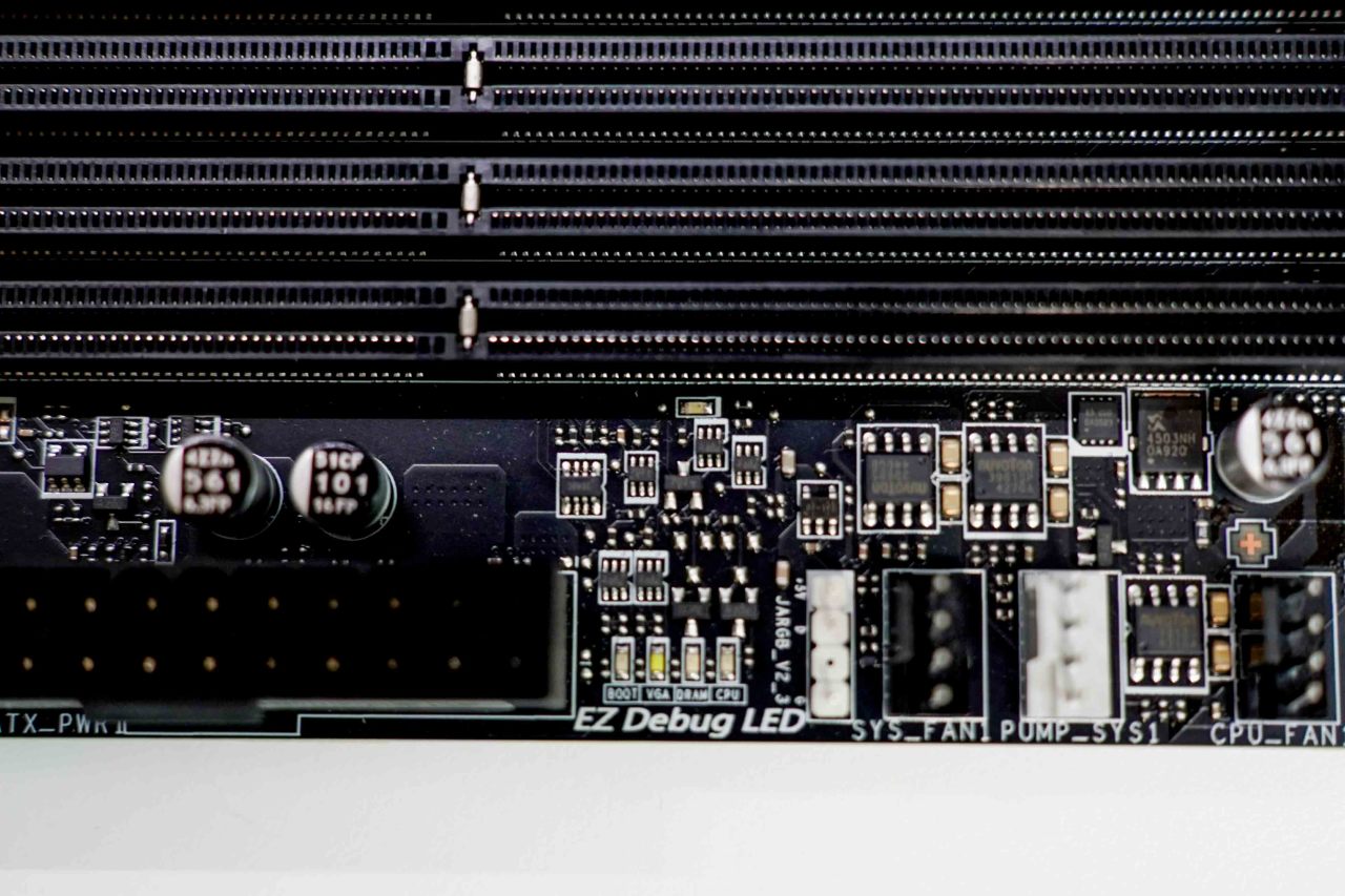 针对内存超频玩家,除了常规的四颗EZ Debug灯以外,上面还有一颗独立的内存状态指示灯,电压有问题会亮灯,方便用户快速排障。