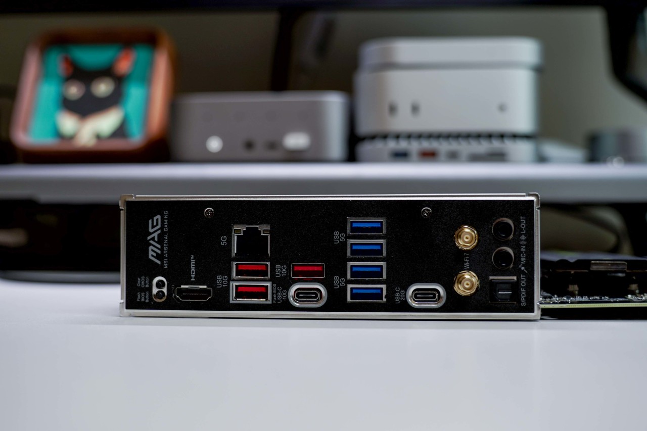 ● 网络方面,板载一块Wi-Fi7无线+蓝牙5.4的无线网卡(可更换),有额外的延长天线,IO背板处有一个5G有线网口。