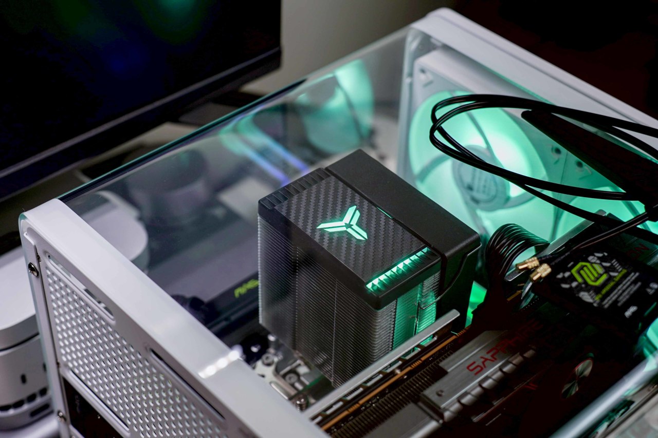 本次使用130mm高度的乔思伯CR-1400 EVO,颜值很高,顶部带个封板且不挡内存RGB灯区,当然性能确实一般,理论解热能力是180W,也能匹配调试后的AMD R7平台就是了。