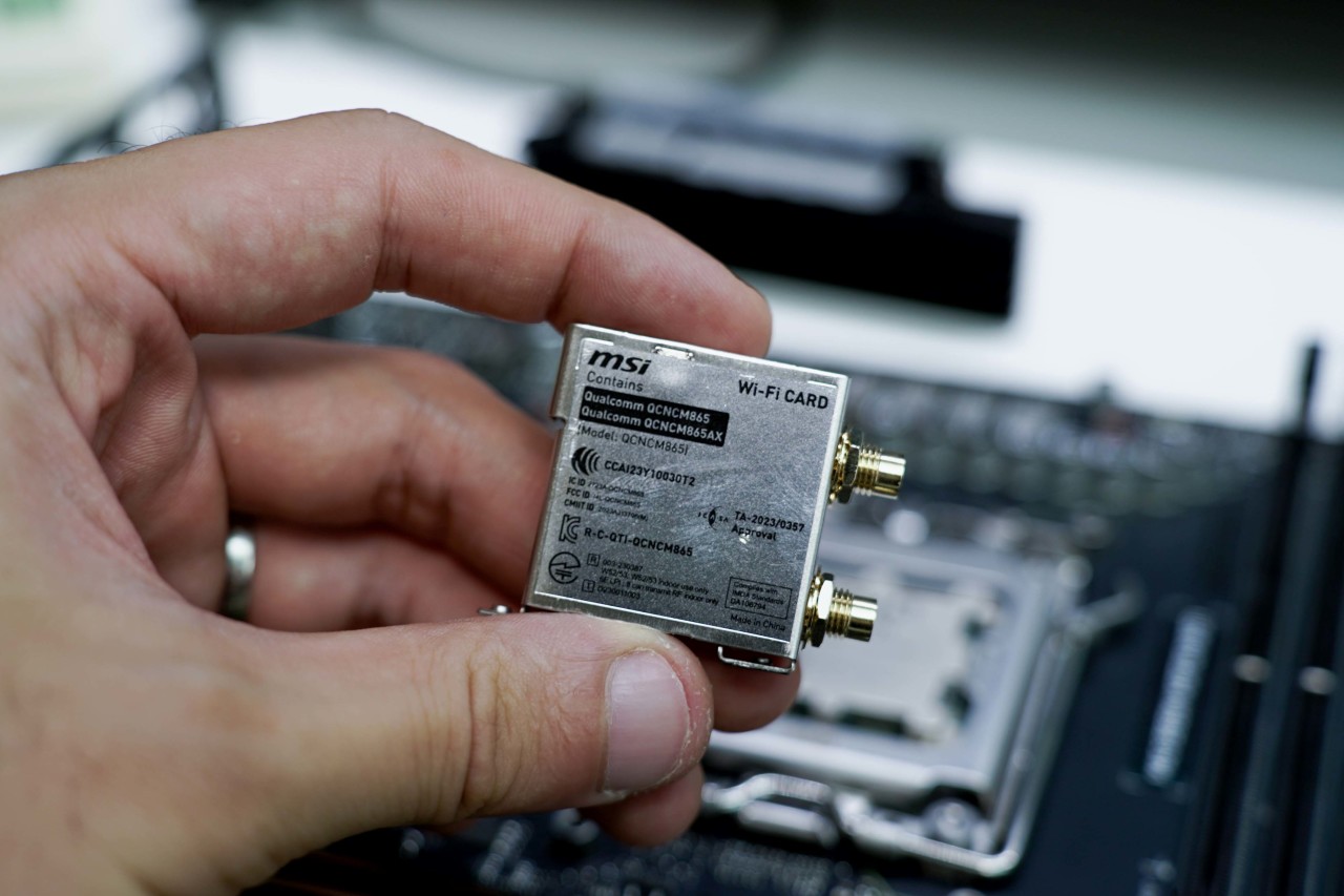 微星B850M迫击炮WIFI的无线网卡是非常大的一个亮点,芯片为高通QCNCM865,单买模块就要接近三百块,而且有高通全家桶加持,和高通路由器/手机传输的延迟会非常低。