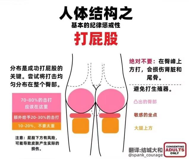 请确保你的击打部位均匀地分布在臀部,绝对避免损伤臀部之上的部位,否则可能损害到肾脏和尾骨。