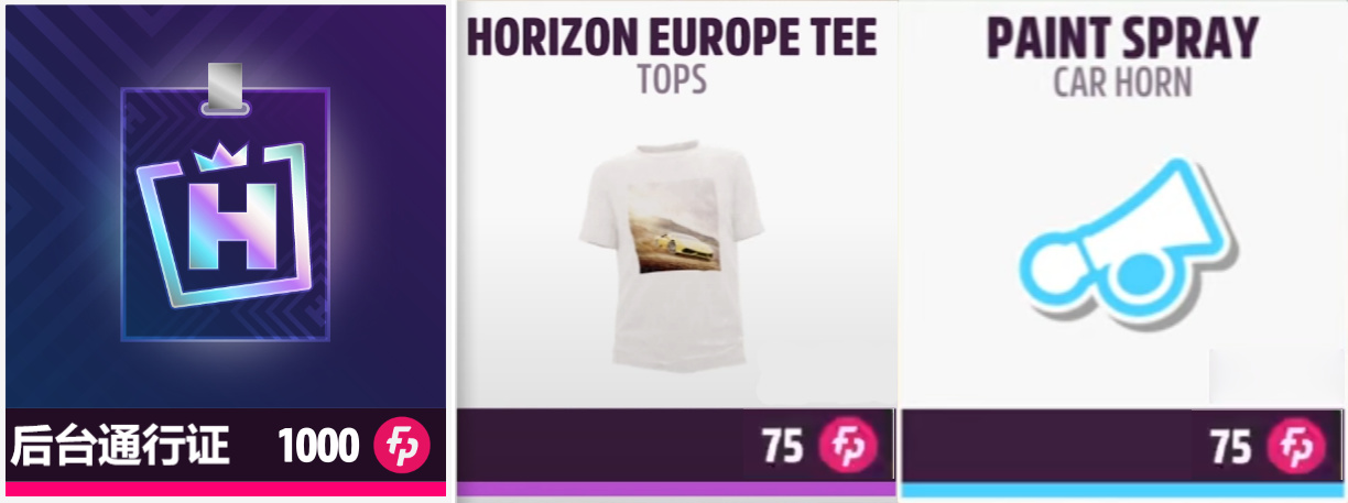 • 其餘物品:後臺通行證、地平線·歐洲 T 恤、噴漆
