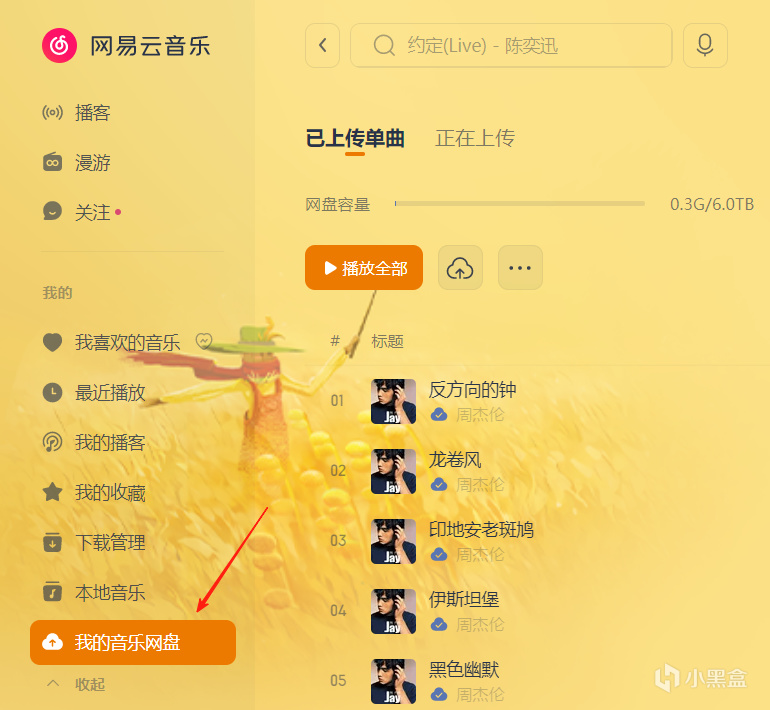 电脑端上传的所有周杰伦歌曲都在这里!可以直接播放。