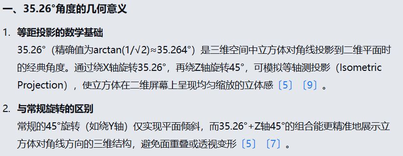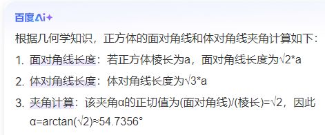 2d平面的對角線確實是45度,但是兩個2d的45°又不會組成3d的對角線