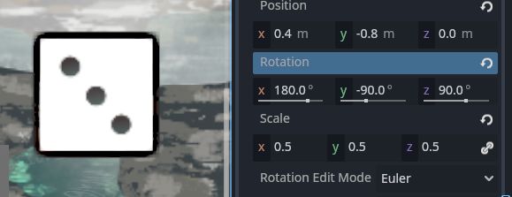 直到我需要擺出示數的時候……看到骰子點數3的面需要把X軸轉180度、Y軸轉-90度、Z軸轉90度,才能轉出PS裏預設的方向……(這個點數貼圖有個漸變,能看出上下方向來)