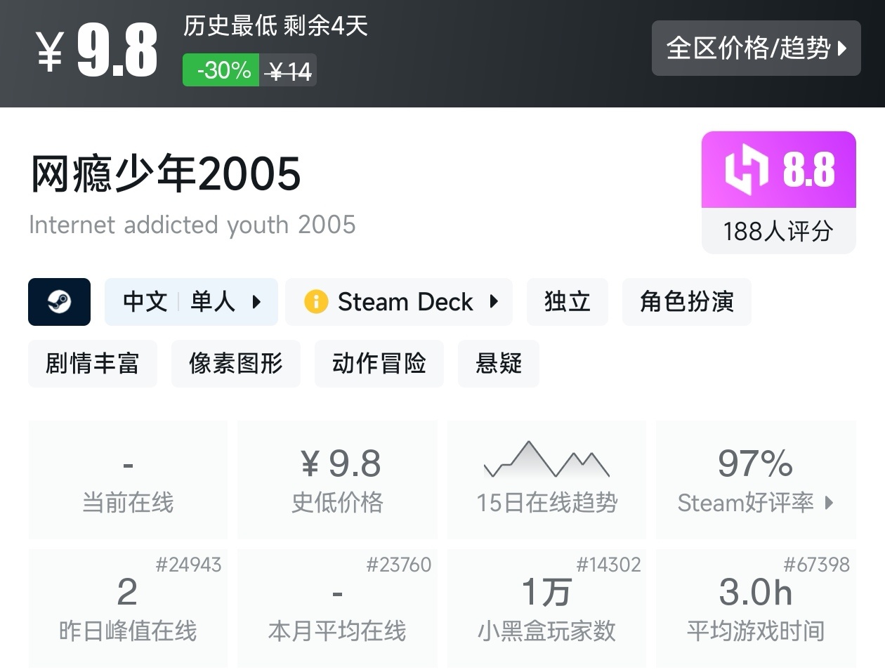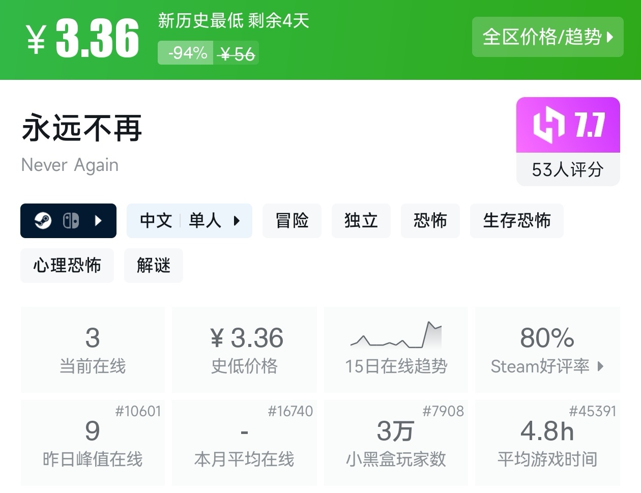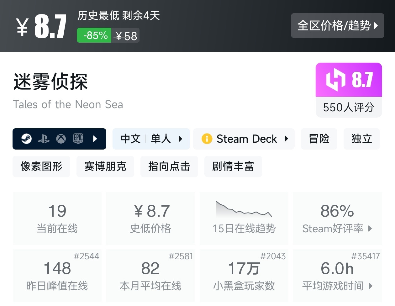 以上就是这期的折扣汇总,几乎涵盖了近期所有10元以下的游戏,这些足足用了我一个小时。