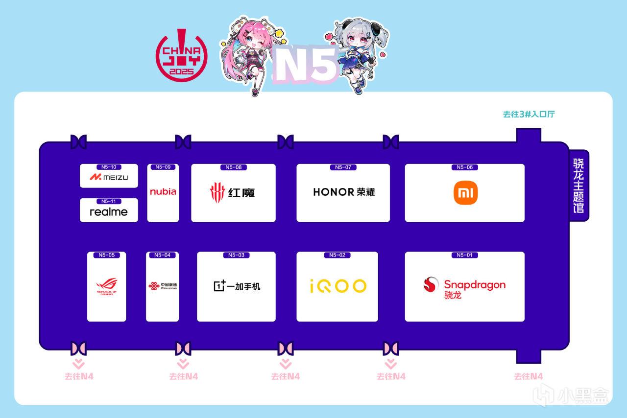 N系列馆(智能硬件与科技产品区):N1至N5馆涵盖硬核游戏、智能家居与汽车、主机游戏及骁龙主题内容。
