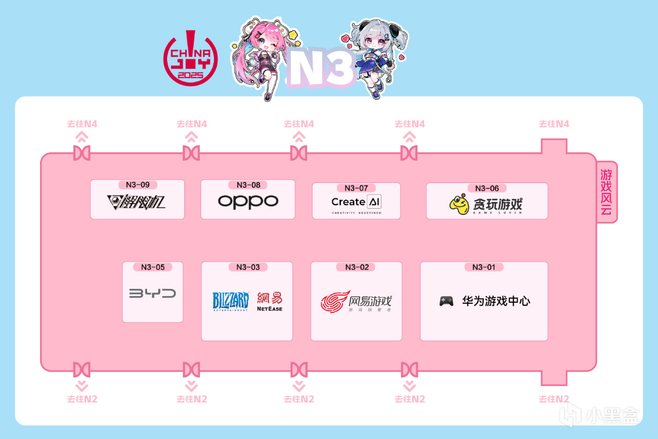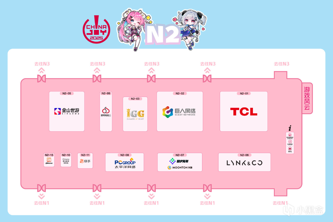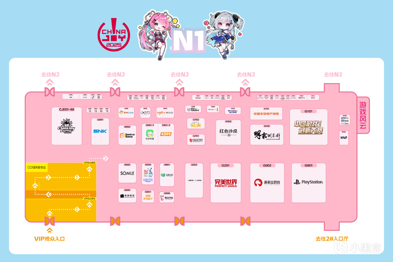 玩家优先E1-E5、N1-N5展区,热门游戏、IP周边集中地。